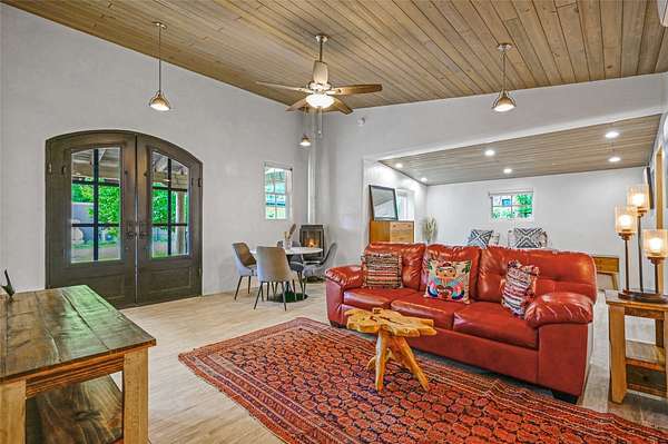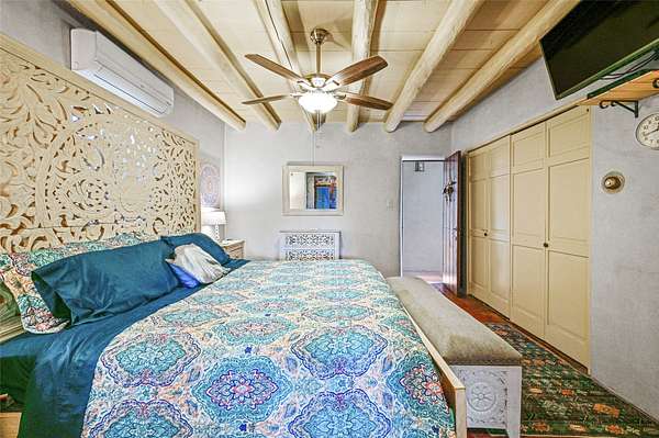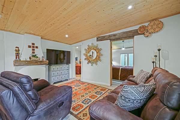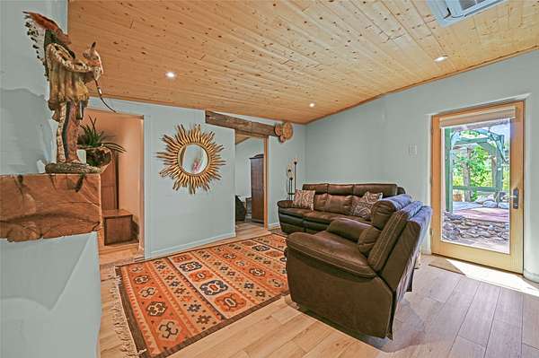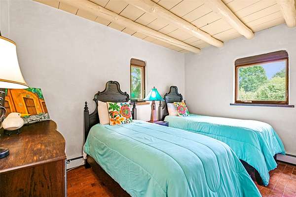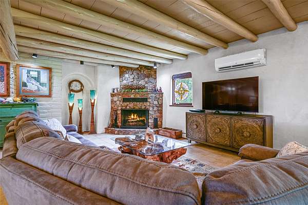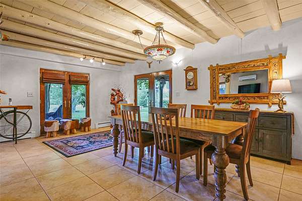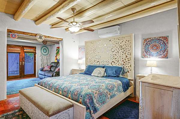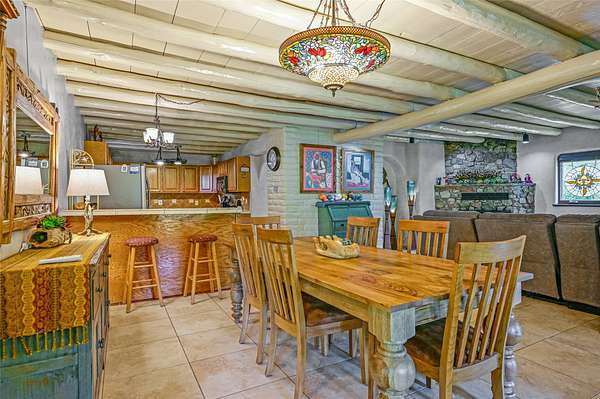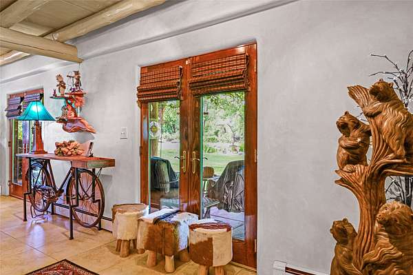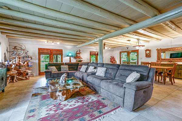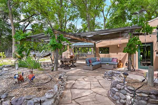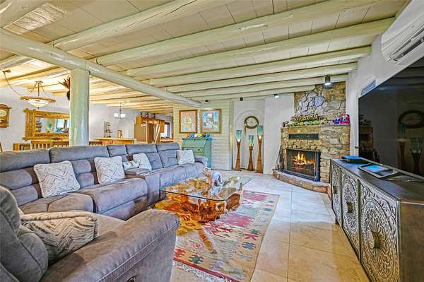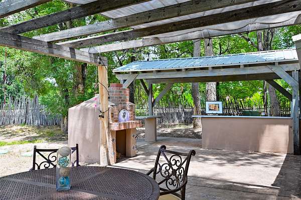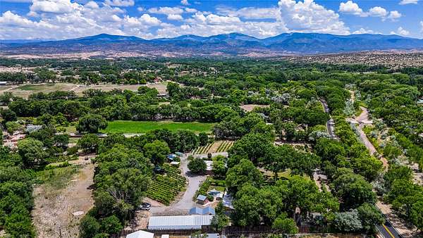 Heavenly 4.5-Acre Estate in Pojoaque Valley - Vineyard, Casitas & More! Rare opportunity to own one of the most spectacular estates in the Pojoaque Valley, just minutes from downtown Santa Fe. This 4.5-acre property offers a serene retreat with 3 acre-feet of domestic water rights and 6.91 acre-feet of irrigation water rights, supporting both vineyard expansion and lush garden potential. The grounds are also home to mature apple, plum, pear, and cherry trees. The main residence is a classic adobe featuring 4 bedrooms and 2 bathrooms (ESTIMATED SQ. FT. 2300), with traditional New Mexican details including vigas, brick floors, two rock fireplaces, and a spacious portal perfect for outdoor living. Three additional casitas (ESTIMATED TOTAL 3100 SQ. FT. COMBINED) provide excellent flexibility: 1BR/1BA Casita - 800 sq. ft. 2BR/2BA Casita - 811 sq. ft. 1BR / 1BA Casita ready for your personal touch and renovation vision - 1500 sq. ft. Ideal for short-term rentals, guest stays, or multi-generational living. Outdoor amenities offer exceptional entertainment and relaxation opportunities: 25-person hot tub/pool Firepit lounge area Outdoor bathrooms and showers Brick pizza ovens Wine cellar 2 RV hookups A large metal barn offers generous storage or potential for workshop, studio, or event use. Whether you dream of running a boutique vineyard, hosting retreats, or simply living in peaceful luxury, this unique Pojoaque Valley estate delivers charm, privacy, and unlimited potential.