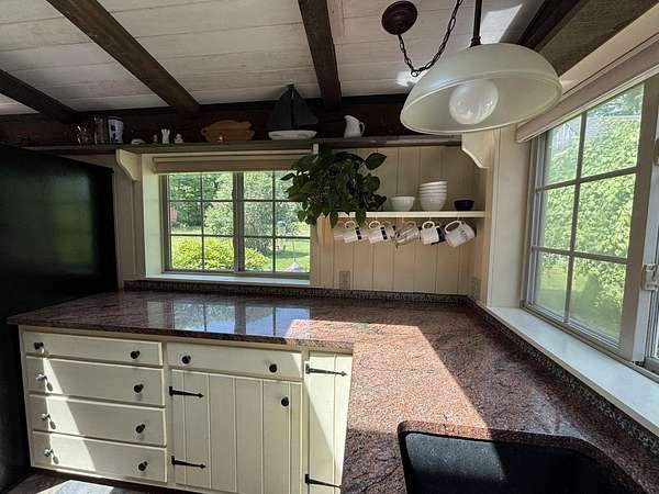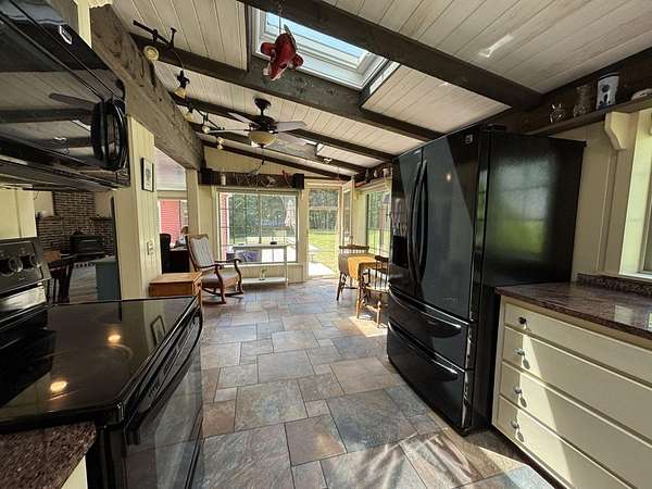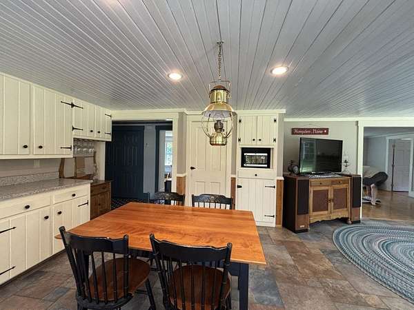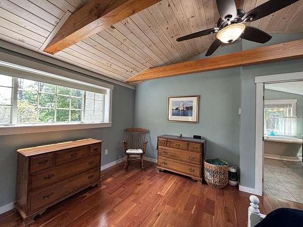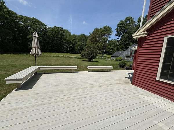This spectacular property was once part of the 1880 Victorian estate at 167 Main Rd South, which back then went all the way to the river. Antique lovers will appreciate the early American design touches and paint colors in this classic Cape Cod. Enter into the functional and convenient mudroom from the attached garage. The first full bath with washer/dryer is next, just before entering the open Kitchen, Dining and Family room. This area has so much natural light, beautiful HW and tile floors w/ radiant heat, access to the back deck, coffee bar, period style cabinets and granite counter tops in the kitchen. The family room offers a beautiful brick hearth with efficient Jotel wood stove. The front, formal living room also has HW floors, river view and a classic brick fireplace. The front, formal dining room is spacious and also offers a peek at the river. This room was and could be an additional 1st floor bedroom if the need arises. The 1st floor primary BR will Wow you. More HW and tile floors with radiant heat, exposed beams, skylights and access to the back deck. The bathroom is luxurious offering a spacious vanity, soaking tub, large, tiled shower, another washer/dryer and walk in closet. Upstairs on the 2nd floor are 2 spacious Bedrooms with wide pine board floors, ample closet space and pretty views of the back yard. The smaller, 3rd BR could also be well suited as an office. The 2nd floor full bathroom is charming, offering tiled floor, full tub/shower and linen closet. The basement, although unfinished, is heated and offers additional and functional space for games, exercise, crafts, etc... Outside, there is a large 2-car detached garage with heat and upstairs storage. Behind that is a large tractor or boat barn with direct access to the paved driveway. This property is at the end of the street adding to the privacy and extends all the way to frontage on the Main Rd.