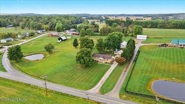 Welcome to this well-maintained 4-bedroom, 2-bath brick ranch home on 1.81 acres, offering the ideal combination of country living with convenient access to town. Located just minutes from Elizabethtown, this property features a private pond, mature trees, detached garage/workshop, covered porches, and no HOA, making it a rare find for buyers seeking space, privacy, and versatility. Inside, this single-story home offers real hardwood floors, solid oak cabinetry, and a practical, functional floor plan designed for everyday living. The spacious living room flows into the kitchen with ample cabinet space, while the generously sized bedrooms provide flexibility for family living, guest rooms, or a home office. The unfinished basement offers excellent potential to increase living spaceperfect for a future recreation room, media room, home gym, or additional storage. Outdoor features truly set this property apart. Enjoy peaceful mornings on the covered front porch overlooking mature shade trees, or relax on the covered concrete back patio with views of open green space. The detached garage/workshop includes concrete floors, electric service, and a screened area, ideal for hobbies, equipment storage, or workshop use. The private pond enhances the setting and adds to the property's charm and usability. With nearly 2 acres of usable land, this property is perfect for gardening, pets, outdoor recreation, and those looking for homes with land while still being close to schools, shopping, dining, and major roadways. This country home near Elizabethtown offers flexibility, privacy, and room to grow.