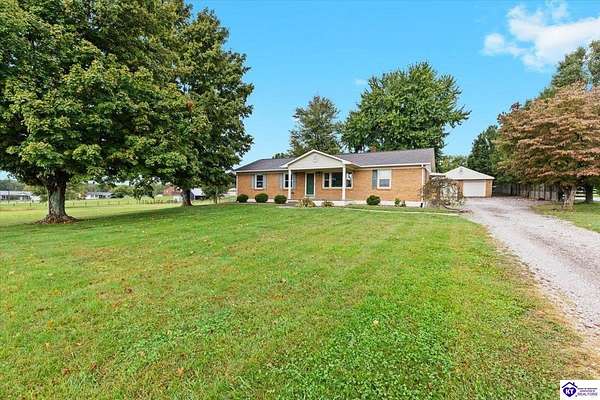Welcome home to this 4-bedroom, 2-bath brick ranch nestled on 1.81 acres of peaceful countryside. With a detached garage/workshop, private pond, and spacious yard, this property blends small-town comfort with all the space and freedom you've been looking for. Step inside to find real hardwood floors, solid oak cabinetry, and a floor plan that provides both comfort and function for growing families or anyone craving more space. The unfinished basement offers endless potential for a future recreation room, home gym, or additional living space. The detached garage/workshop features concrete floors, perfect for projects, hobbies, or extra storage.There is also a screened in area off the garage. Relax outdoors on the covered front porch, or host gatherings on the covered concrete patio just off the back of the home. With plenty of space for gardening, play areas, and outdoor activities, this property provides the freedom and privacy that's hard to find while still being close to shopping, dining, and schools in Elizabethtown. Whether you're looking for a family home with room to grow, or simply want to enjoy peaceful country living, this property checks all the boxes.