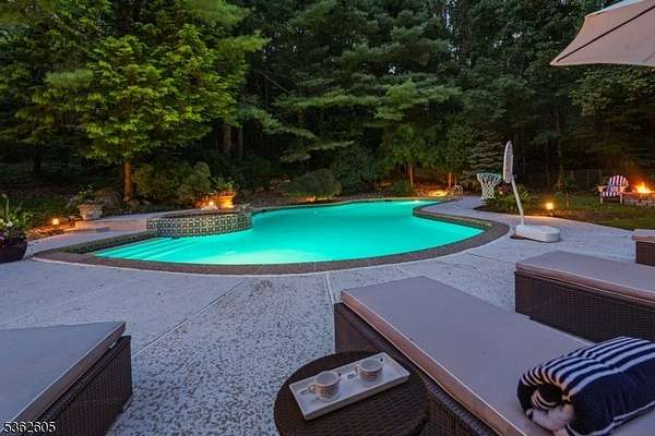 PRICE IMPROVEMENT!!! Experience refined Lake Valhalla living in this private luxury retreat, nestled on 3.61 acres in Montville's highly sought after Lake Valhalla community. This elegant 4 bed, 3.1 bath Colonial combines timeless architecture w/ on trend sophistication & offers indoor/outdoor living at its best! The heart of the home is a chef designed kitchen w/wet bar (reno 2023) featuring high end appliances & details. Ideal for both everyday & high octane entertaining. WOW factor marble foyer(2023), gracious dining room & living room flow into warm family room all filled w/natural light & serene nature views. Step outside to your personal resort, a huge beautiful IG gunite pool w/ expansive patio and expansive entertaining deck surrounded by lush, wooded privacy for day or night time fun. Perfect for hosting or relaxing in total privacy. Upstairs, 4 generous bedrooms including a luxurious primary suite with tuscan spa bath and private balcony. LL offers great hang out space, gym, walk out access and tons of storage.Lg main driveway with second driveway above-plenty of parking! Located minutes from Towaco train( approx 2.2 miles). Montville area offers many restaurants, pubs, shopping& parks. Top-rated schools and 1.2 miles from famed Lake Valhalla Lake Club, offering many sports, activities, dining. This is more than a home-it's a lifestyle. New Roof 2022, HVAC 2021, Kitchen/bath 2023, New boiler and natural gas connection in progress.
