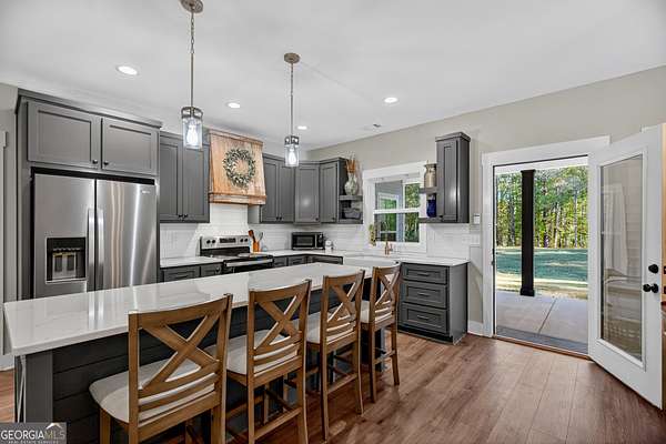 Discover your perfect retreat on twelve picturesque wooded acres in the highly sought-after Rosemont School District. This thoughtfully designed three-bedroom, two-and-a-half-bathroom home offers 2,119 square feet of comfortable living space surrounded by the tranquil beauty of large farms and pastoral landscapes. Step onto the spacious front porch and feel your stress melt away as you take in the serene wooded surroundings. The award-winning floor plan features gorgeous luxury vinyl plank flooring throughout and an open layout that seamlessly connects living spaces. The heart of the home showcases custom cabinetry paired with upgraded appliances, creating a kitchen that's both functional and beautiful. Nature enthusiasts will delight in the abundance of wildlife that calls this property home, making every morning coffee on the rear porch an adventure. The flexible room provides endless possibilities - whether you need a home office, playroom, or creative studio, this bonus space adapts to your lifestyle. Practical amenities include a convenient two-car carport for protected parking. The property's location offers the perfect balance of privacy and accessibility, with Callaway Gardens just a short drive away for outdoor recreation and family fun. This home represents exceptional quality construction in a setting that feels worlds away from the hustle and bustle, yet remains conveniently connected to community amenities. Whether you're watching deer graze in your backyard or entertaining friends on one of two inviting porches, this property offers a rare opportunity to embrace country living without sacrificing modern comforts and convenience. Call your Favorite Realtor Today to Learn More!
