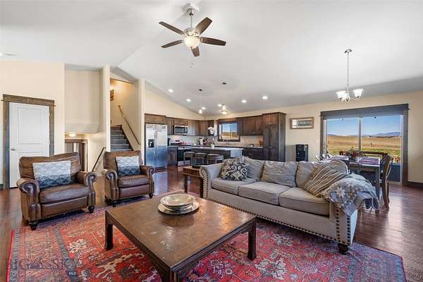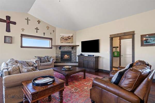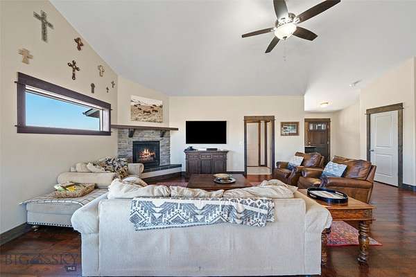Welcome to this beautifully maintained home just outside of Three Forks, offering 2,748 sq. ft. of thoughtfully designed living space on over 2 acres. This exceptional property features 4 bedrooms plus a dedicated office and 3 full bathrooms, providing plenty of room to live, work, and grow. Inside, you'll find custom-stained hardwood floors, elegant soft-close cabinetry, and sleek granite countertops throughout. The inviting living area is anchored by a stunning stone fireplace and a built-in media center, creating a warm and functional gathering space. Vaulted ceilings enhance the main living area, filling the home with natural light and an open, airy feel, perfect for both everyday living and entertaining. Outside, enjoy a paved driveway leading to an oversized 2-car garage complete with additional attic storage. The expansive lot offers space, privacy, and endless potential. Don't miss your chance to own this incredible property, schedule your private showing today!