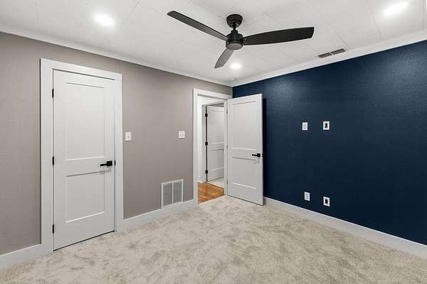 New carpet, 2 inch blinds, and ceiling fans in bedrooms