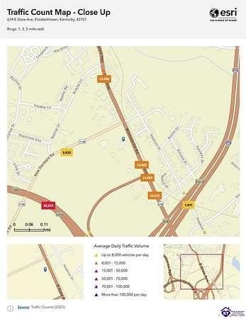 Excellent opportunity to own a high-visibility 0.52-acre corner lot in one of Elizabethtown's established commercial corridors. Zoned C-3 (Commercial), this property offers versatile potential for retail, office, or service development. With a daily traffic count of approximately 14,000 vehicles, the site delivers strong exposure and easy accessibility. Located in a highly connected area with quick access to I-65, the Elizabethtown Bypass, Western Kentucky Parkway, and Lincoln Parkway, this lot offers ideal positioning for businesses seeking convenience and visibility. All major utilities are available -- water, electric, sewer, and natural gas -- making it ready for development.