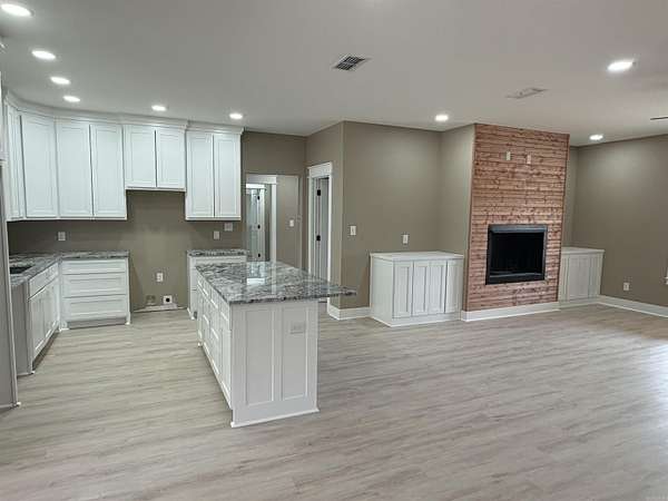 Discover the perfect blend of comfort and privacy with this fully bricked beautiful 4 bedroom, 2 bathroom home situated on 2.30 acres. This home features an open, split floor plan that offers both functionality and style for everyday living. The heart of the home includes a well-appointed kitchen with stainless steel appliances, a gas stove, and a large walk-in pantry- perfect for storage and entertaining. You'll also find a gas fireplace, spacious primary suite complete with his and hers vanities, a large walk-in closet, soaking tub, and walk-in tile shower. When you step outside to the expansive back patio, you'll find peaceful wooded views- ideal for relaxing or hosting family and friends. This property offers the space you want with the features you need!! Don't miss your chance to call it home!! Schedule your showing today!!