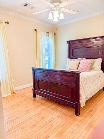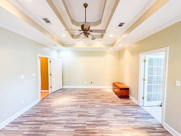 Est $2,982/moFIT FOR A QUEEN...This house is customized from top to bottom. It offers 5 total bedrooms and 3 full baths and 2 half baths. The ceilings are 10-14 ft throughout the home. The master suite ceilings are double traced and the bath offers a spa like setting with his/her vanities and large walk-in closets. There's 3 bedrooms on the same hallway as the master. The kitchen has enormous cabinet/countertop space. A separate living area. A double garage separate from the house offers a workshop on 4.7 beautiful acres.