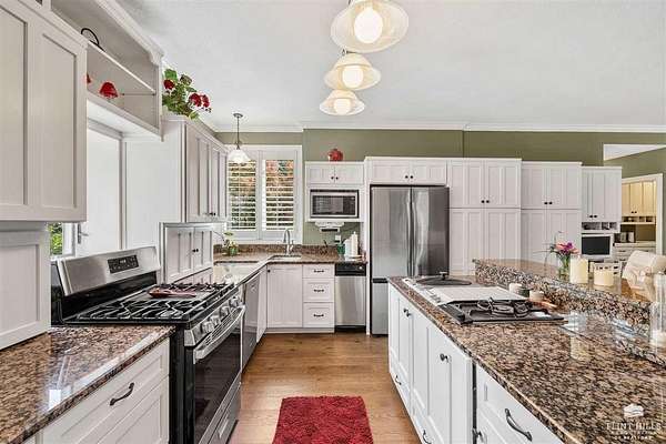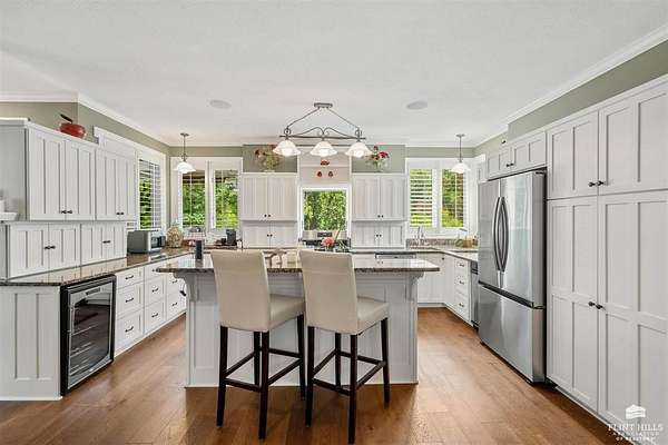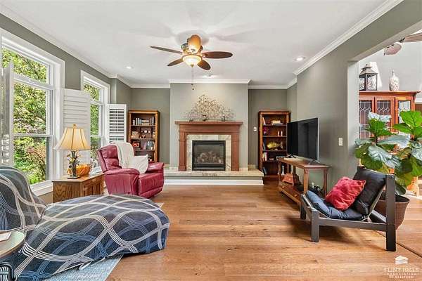 This is the one you have been waiting for, welcome to 630 S Scenic Drive! Sitting on just shy of 20 acres, this property offers privacy, peace, and pure Kansas charm. Tucked in the mature trees, this stunning home offers country living, but also offers the convenience of being minutes from the heart of Manhattan. This home features all the modern updates you could want, plus every bedroom is an en suite. The kitchen is a showstopper-think spacious, stylish, and perfect for hosting everything from holiday dinners to morning coffee chats. The views from the property are breathtaking, whether you're relaxing on the porch or wandering through the grounds. With multiple outbuildings, this property has endless possibilities. It is perfect for a variety of hobbies, a workshop, or extra storage; there's space to dream big. No matter what you are looking for, 630 S Scenic Drive is the kind of place that makes you exhale the moment you pull in.