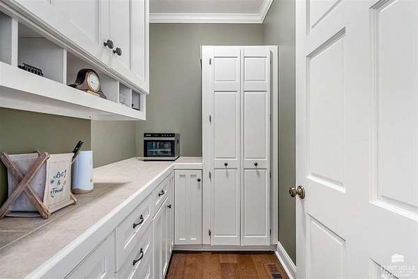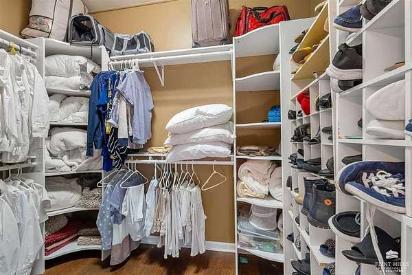 - Breakfast Bar, Ceiling Fan(s), Central Vacuum, Dual Primary Closets, Eat-In Kitchen, Garage Door Opener(s), Kitchen Island, Pantry, Primary Bathroom, Primary Bedroom Walk-In Closet, Safe Room, Storm Shelter