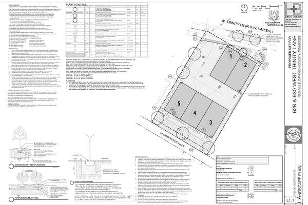 Shovel-Ready Development Opportunity in the River District. Discover an exceptional investment opportunity in Nashville's growing River District. This fully entitled, shovel-ready site at 630 West Trinity Lane offers plans and approvals for five residential units--comprised of a triplex and a duplex--delivered with all final site, utility, stormwater, and landscape plans in place. The site has already been cleared and preliminarily graded, saving valuable time and cost in the development process. The property features approved SP zoning under Case No. 2020SP-025-002 and includes finalized Metro Water and Sewer connection plans. Fully engineered and Metro-approved stormwater and grading plans have also been completed, along with a professionally designed landscape plan. Final architectural plans for a three-unit and two-unit build are included, as well as a complete survey and civil documents. This turnkey development package eliminates months of pre-construction work, making it ideal for builders and developers ready to proceed directly to permitting and ground-breaking. Conveniently located just minutes from downtown Nashville and major interstates, 630 West Trinity Lane is perfectly positioned for a successful multi-family residential build in one of the city's most promising growth corridors.