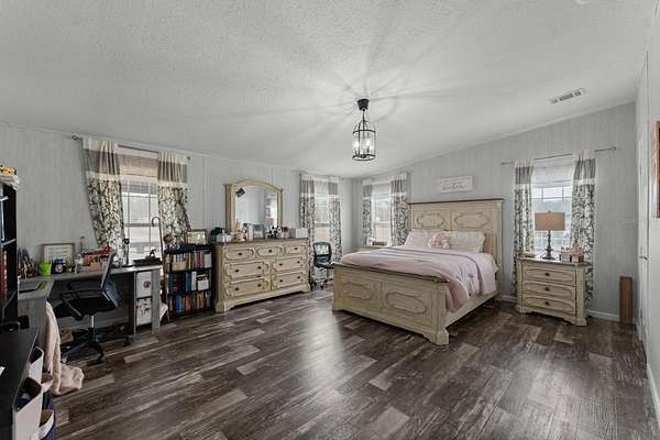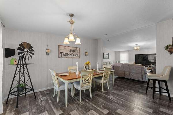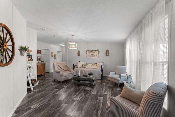 Nestled on a spacious 2-acre lot, this charming 3-bedroom, 2-bathroom home offers the perfect blend of comfort, functionality, and modern living. Designed with an open-concept layout, the home creates a warm and inviting atmosphere that is ideal for both everyday living and entertainment. Inside, you'll find a split-bedroom floor plan, providing added privacy between the primary suite and guest bedrooms. The expansive primary suite serves as a private retreat, featuring a generous walk-in closet and a well-appointed en-suite bathroom with a large stand-up shower with dual showerheads and a double-sink vanity.
