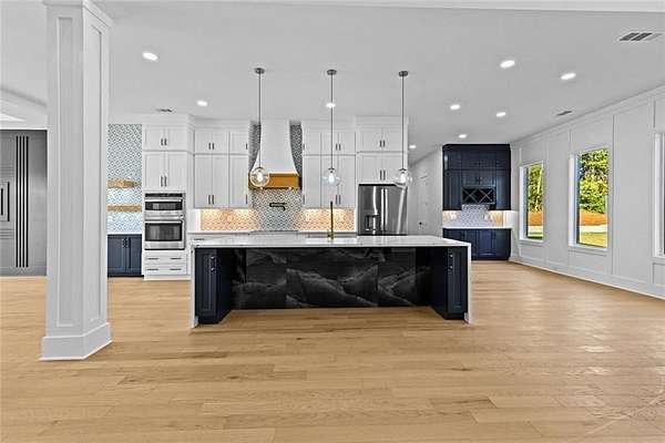For a limited time, a $50,000 buyer incentive (toward an interest rate buydown or closing costs) sets the stage for an extraordinary opportunity at 6300 Highway 81. This breathtaking European-inspired luxury estate sits on 1.7 fully fenced and gated acres just minutes from Loganville's town center, offering a perfect blend of convenient access and secluded privacy. Built in 2025 with uncompromising craftsmanship and a commanding presence, the ~6000 sq ft residence offers 5 bedrooms, 5.5 baths, and a captivating blend of classic elegance and modern comfort. Four-sided brick construction, rich beamed ceilings, expansive windows, and multiple fireplaces set an opulent tone, while the living room's soaring two-story fireplace serves as a dramatic centerpiece from the moment you step inside. The main level boasts a gourmet chef's kitchen with custom cabinetry, high-end appliances, and an oversized island ideal for lively gatherings and everyday enjoyment. Adding to the home's versatility, a second full kitchen makes multigenerational living or entertaining effortless, ensuring extended family and guests enjoy complete comfort and privacy. The indulgent owner's suite is a true retreat, featuring a private sitting area, a spa-inspired bath, and a custom walk-in closet, while each secondary bedroom includes its own en-suite bath for a premium living experience. Two full laundry rooms-one on each level-provide unmatched convenience for modern life. Step outside into your private gated oasis: the expansive yard is fully enclosed with privacy fencing and offers ample room to add a pool, an outdoor kitchen, or even more landscaping for enhanced privacy and screening. With no HOA, you have total autonomy to enjoy your estate as you wish, complemented by the convenience of public water and the independence of a reliable septic system. This is a rare chance to own a brand-new luxury estate on gated acreage with high-end finishes and true freedom just minutes from Loganville's town center-a combination that's almost never available. With a $50,000 buyer bonus on the table for a limited time, this one-of-a-kind opportunity won't last long-act fast to make this luxurious retreat your own before it's gone.