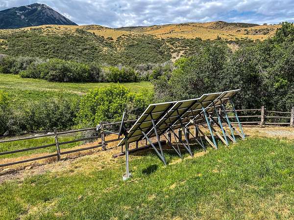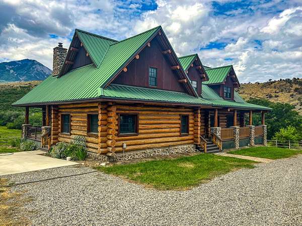 - Improvements: 3,140+- sq. ft. off-grid log home with 4 bedrooms and 3 baths; powered by solar and hydro systems; wraparound deck, balcony, and mountain views.