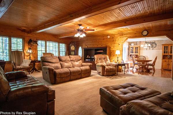 Beautiful 4 bedroom, 2 bath home on 5 acres with an attached heated 2-stall garage. Completely remodeled and expanded 12 years ago, this well-kept home features spacious bedrooms and generous closets. Outside, enjoy a workshop with electric and woodstove plus an additional outbuilding to store your toys. The property borders thousands of acres of national forest on two sides, offering unmatched privacy. Outdoor enthusiasts will love the quick access to the North Country Trail, Trail 3, and world-class fishing on the Big South Branch of the Pere Marquette River just a short walk away. With high-speed fiber internet, this home is perfect as a full-time residence, vacation retreat, or VRBO investment. Appliances are included and some furniture can be purchased separately.