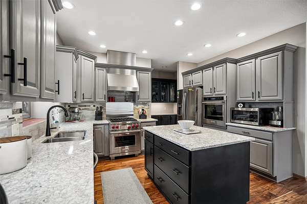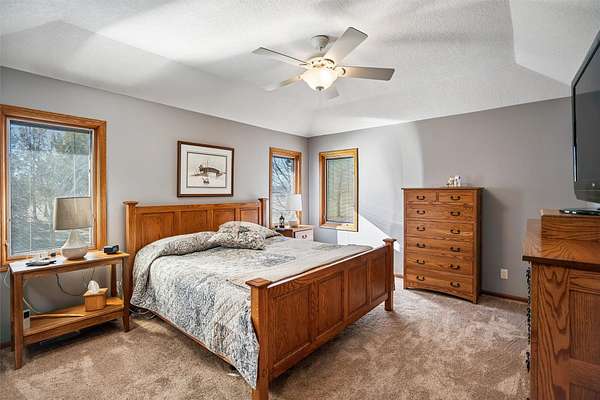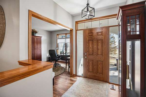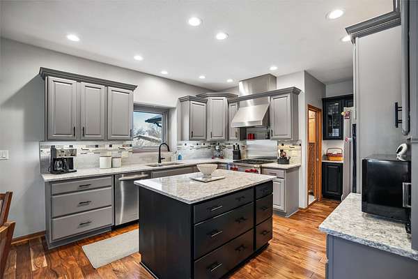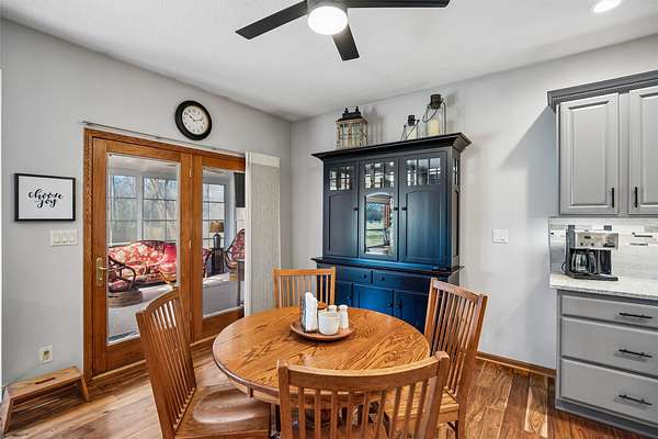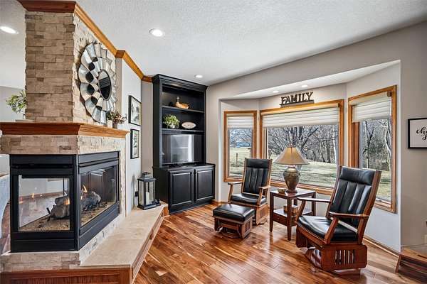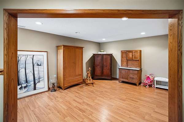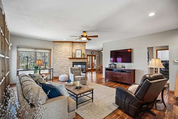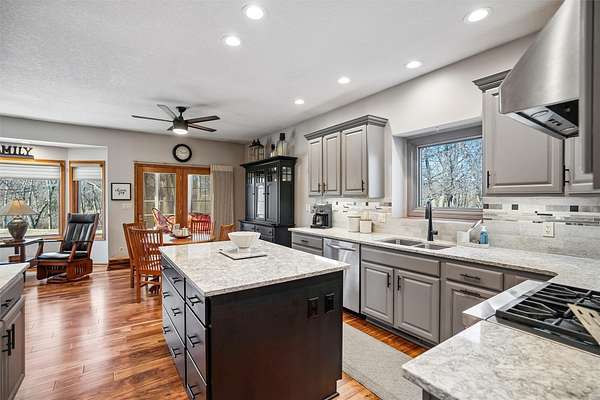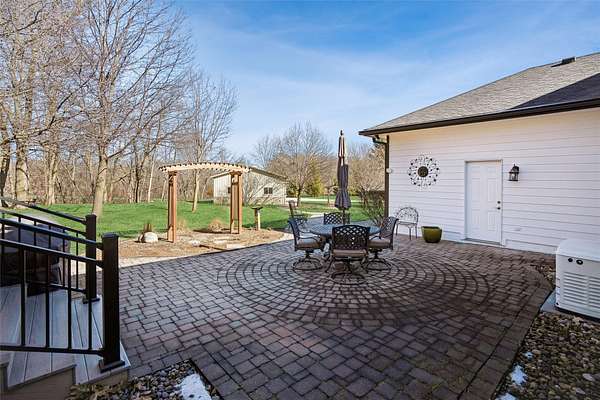 Discover the perfect blend of comfort, style, and space with this beautifully updated 3.29 acre acreage! This inviting ranch home features a 3 car garage and a 30x40 heated and air conditioned shop, ideal for hobbies, projects, or storage. Inside, the home has been thoughtfully updated throughout with quality finishes. The kitchen stands out with a Wolf stove and vent, an additional wall oven, and all appliances included, perfect for everyday living and entertaining. Enjoy year round comfort with geothermal heating and cooling plus a whole house generator for added peace of mind. The main level offers a spacious primary bedroom and a fully remodeled bathroom with a freestanding soaking tub. A versatile front room can serve as an office, dining, or flex space, and all main level flooring has been updated. The 3 season room is a relaxing bonus space filled with natural light. The finished basement includes two bedrooms, a large family room, extra flex space, and ample storage. Outside features beautiful landscaping with two brick patios, a brick path to the shop, three custom wooden plant structures, a composite deck, and an asphalt driveway. Enjoy peaceful views, mature trees, open green space, and room to entertain, garden, or simply relax in your own private retreat. This property truly offers the best of comfort and country living!