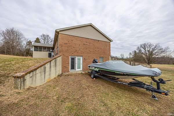 Look at this gem in Taswell! Nice brick ranch has 3-bedroom, 2 bath with partial finished walkout basement. Open floor plan, eat in kitchen dining room area overlooking the family room with a fireplace. Relax in the lower level and watch movies from your very own movie set up system. Enjoy the evenings out back watching deer and other wildlife from the screened in porch. Walking distance to Patoka Lake with access to the Little Patoka boat ramp less than 1 mile away. Along with the 2-car garage there is an additional 24'x36' detached garage for all the extra toys. All this on over 4 acres with a park like setting and views of the country.