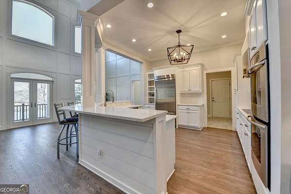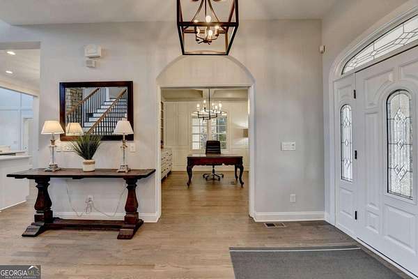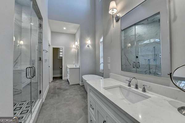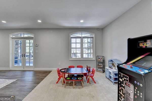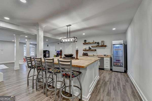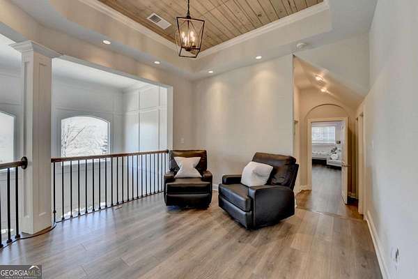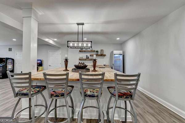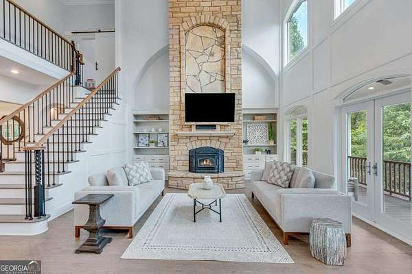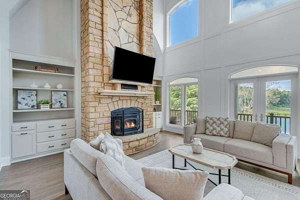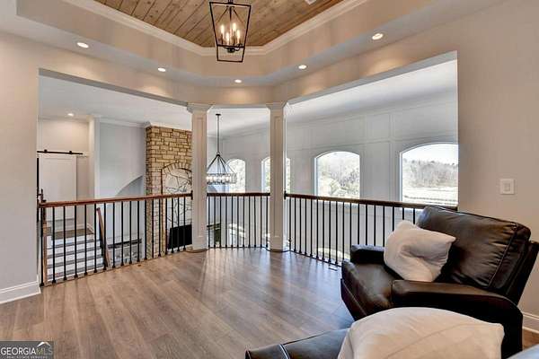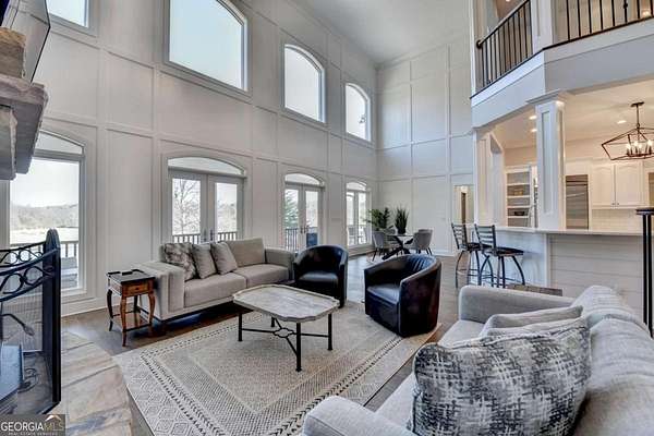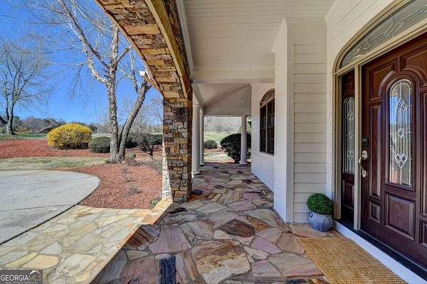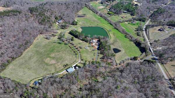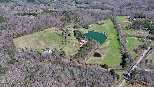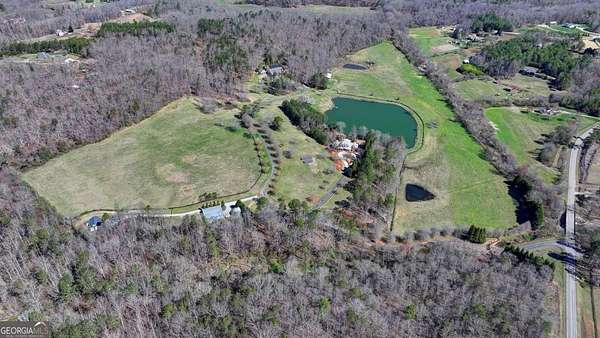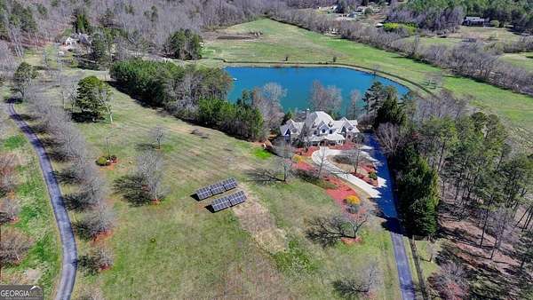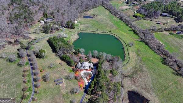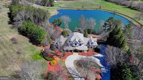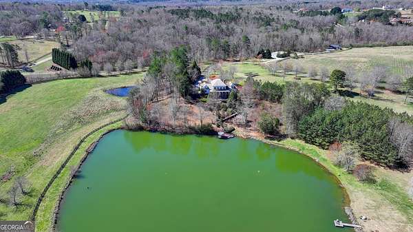 Garden and Gun Dream Home GATED ESTATE on 36+ stunning pristine acres with meticulously designed PRIMARY HOME (6600sf), SECOND RENOVATED COTTAGE (1800sf approx), separate PRIVATE RECREATION BUILDING/INDOOR GYM, FENCED MAINTAINED PASTURES, and a TROPHY 5-ACRE FISHING LAKE with PRIVATE DOCK. OWNER FINANCE OPTION! Enter through the stone-gated entrance, where tree lined paved driveway and professional landscaping lead to the main estate which is privately centered on the property. The stacked-stone covered porch and circular driveway welcome you, with ample parking for guests & events. The professionally designed interior features light neutral tones and a two-story stone fireplace in the great room. Incredible recently designed butler's pantry and coffee/wine bar. The main entrance leads to a library/office with custom furniture grade built-in shelving, a spacious dining room, and a completely remodeled chefCOs kitchen with Thermador appliance package and sub-zero refrigerator, quartz counters, and new lighting. Expansive windows and balcony french doors offer views of the property and lake. The breakfast room flows into the Great Room with furniture grade built-ins and a flat-screen wiring pkg above the fireplace. The OwnerCOs Suite is on the main level with terrace access, a custom-designed walk-in closet, and a spa-inspired bath with heated floors. The main level includes a perfectly located guest half bath. Upstairs, find four bedrooms and three full baths, including two ensuites. The loft area is customized with bunk beds and offers easy conversion to traditional massive guest suite potential. The upstairs features a spacious private loft seating area lounge. The lower finished terrace level features a custom butcher block island bar, second kitchen, family room, billiards area, 2 full baths, guest ensuite bedroom, and a sliding barn door leading to a massive secure storage discrete fresh air concrete bunkerCoperfect for a wine cellar, safe storage, or shooting range. The creative possibilities are endless. The lower terrace level opens to a screened porch the entire length of the home, and an infinity custom pool design option overlooking lake. A trex deck and boardwalk lead to the private dock and TROPHY BASS LAKE, designed by Aquatic Environmental Services. The lake is its own ecosystem including investment into Electrofish research, 5 feeders, bluegill, crawfish, trout, strain bass, grass carp, as well as a pebble bottom and appropriate aquatic plant life. The property has herds of trophy bucks and deer. The primary estate home includes water purification, fresh air ventilation, and dehumidification. GUEST COTTAGE: A 2-bed, 2-bath caretaker or guest suite cottage with private driveway and views, covered front porch and spacious accommodations overlooking large pasture. PRIVATE GYM REC BUILDING: Features a basketball/pickleball court, golf simulator room, kitchen, and two bathrooms with spaces for exterior expansion ideas like tennis or outdoor rec/barn. There are two fenced pastures and a smaller pond ideal for a home site, barn, equestrian facilities, gardens, or homesteading. What is your vision? The estate is close to Lake Lanier, private airports, Falcon Training Camp, UGA campus, wineries, vineyards and more. Appointment required with proof of funds/funding and 24-hour notice. The driveway provides easement to a neighboring 52-acre estate that is also on market with different office, for those interested in a combined 88+ acre compound. Call today for an appointment. We are here to help! Be sure to interact with the virtual tour here!