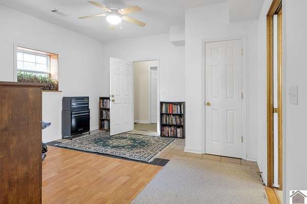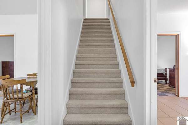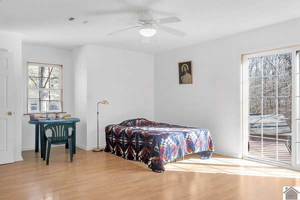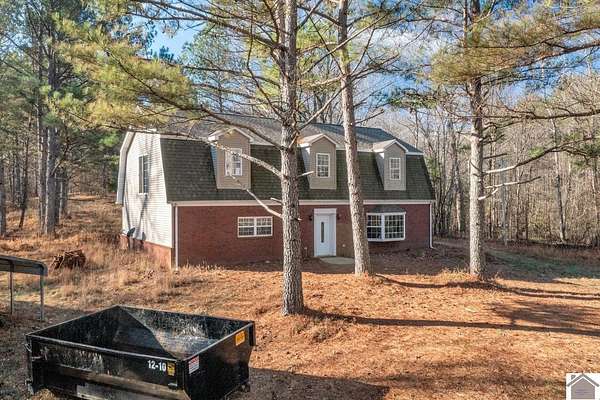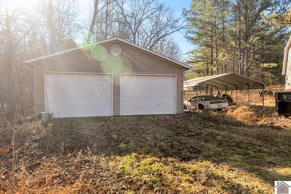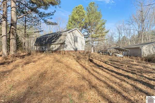 Private and Peaceful describe this 21.4 acre property located just moments from Kentucky Lake. This beautiful-versatile property offers timber, pastures and 120 yards of road frontage, located only minutes from both Murray and the Kentucky Lake. The 4 bedroom, 2 bath home is designed with a comfortable living area, 2 bedrooms, and the well-appointed kitchen featuring solid wood cabinets and a spacious dining area on the main level. 2 large bedrooms plus office space and storage accent the upper level. This property checks all the boxes for privacy and comfortable living with great views and a convenient drive from Murray and Kentucky Lake.