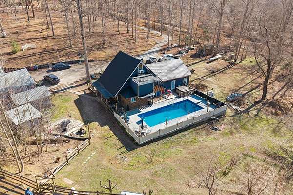 Beautifully renovated country home with new in-ground pool! Pool is fiberglass with chlorine and pump. Newly expanded and renovated gourmet kitchen with tons of counter and cabinet space. The perfect spot for entertaining! Dove gray cabinets, charcoal quartz, stainless appliances and lots of windows. Recently added primary suite wing with beautiful full bathroom. Dream craft room, study room or office on the main level. Laundry on main level and 2nd level. Craftsman interior stair case leads to two, 2nd floor bedrooms and bath. Extra spacious walk-in closet on the 2nd level. The third floor houses a loft and office that could be bedroom space. The rooms in this home are all generously sized. The walk-out basement was recently partially finished and is heated and cooled. Literally space for everyone. Wrap around porch on the front and side. Lots of space for outdoor furniture on the new patio around the pool. Plus a hot tub. New metal roof. New deck and pergola in the back. Hardyboard siding and coppertone gutters. Some windows added in the last 2 years. Tankless hot water heater 2 years plus a 50 gallon tank that is 2 years old. HVAC 1 is approx 5 years, HVAC 2 is approx 10 years. Meriwether Lewis FIBER high speed internet, ideal for working from home, gaming and streaming. 3 of the cutest storage sheds you have ever seen! Paint and decorate them for a creative touch. Large horse shoe driveway with tons of parking. Extra storage to the left of the home. Private wooded setting with fencing for animals. Serene aerated large stocked pond + platform deck and fountain that attract ducks and wildlife. If you would like to move in turn key for a mini farm, some of the animals can remain. Gated for privacy and security. Perfect mini-farm set in recessed terrain for beauty and seclusion. NOTE - there are lots of sweet animals on site that need to go up prior to showing, so please do not drive in to the property without an appointment. There are cameras and animals roaming.