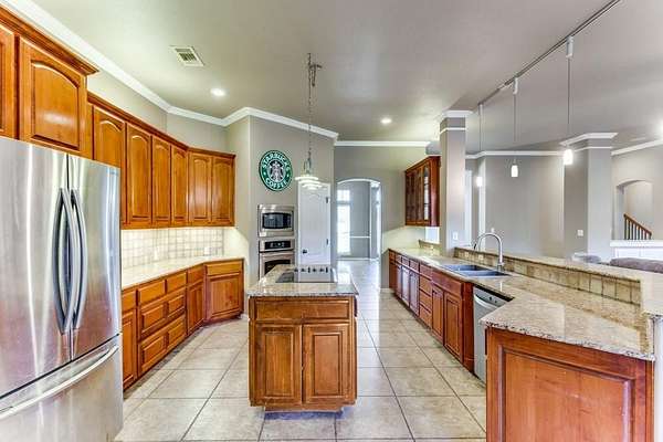 - Built-In Features, Cable TV Available, Decorative Lighting, Dry Bar, Eat-In Kitchen, Granite Counters, Kitchen Island, Natural Woodwork, Open Floorplan, Pantry, Sound System Wiring