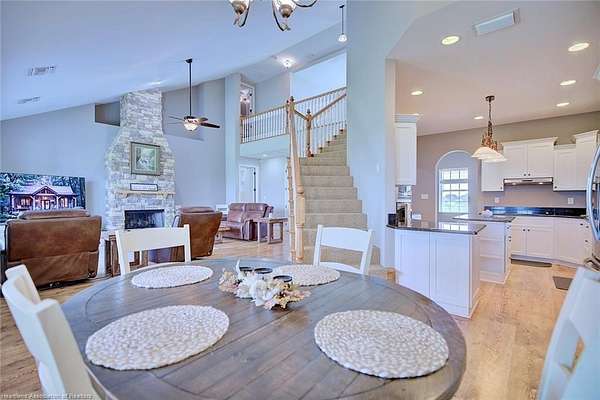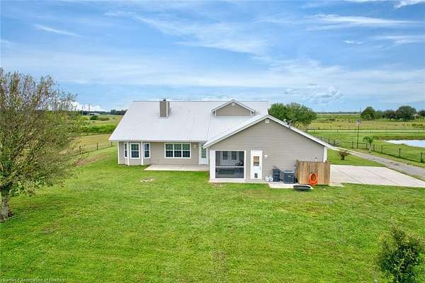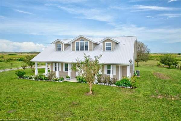 UNDER CONTRACT WITH KICK OUT CLAUSE - Welcome Home to this picturesque two-story farmhouse, perfectly placed on 5 fully fenced in acres of land offering serene pasture views in every direction! Located in the peaceful neighborhood of Zolfo Springs, FL and built in 2009 with a combination of frame/concrete block construction - this home gives timeless charm with thoughtful details throughout. This beauty welcomes you with a spacious wrap-around front porch and double doorway entry. Walking in, you will immediately feel 'safe and at home'. The formal dining room is immediately to your left adjacent to the kitchen. The gourmet kitchen is a showstopper equipped with granite countertops, white shaker-style cabinetry, high-end stainless-steel appliances, and a center island. Next to the kitchen is a super convenient large indoor utility room with an additional entryway into the home, plenty of cabinetry, a utility sink, as well as access to the attached oversized two-car garage. The main living areas feature soaring cathedral ceilings, a striking wood-burning stone fireplace, breakfast nook, and a convenient powder room for guests. The downstairs primary suite offers a spacious walk-in closet and a luxurious en-suite bath with dual vanities, a jetted tub, a fully tiled walk-in shower, and a solid-surface counter vanity. Upstairs, you'll find two additional bedrooms, a full bathroom with a shower/tub combo, plus a centrally located versatile bonus room ideal for a home office, hobby space, or playroom! The metal roof was replaced in 2018, 2 new HVAC systems have been installed, both offering peace of mind for years to come. Outside, the property is designed for country living at its finest. The separate back porch invites you to relax and enjoy the peaceful surroundings. The land is cross-fenced with wire pastures and an inner perimeter of post-and-board fencing around the home. A gated driveway leads you in, and a picturesque pond sits within the pasture--perfect for raising certain animals within county allowances or simply enjoying the view. With its rustic charm, modern conveniences, and idyllic surroundings, this property is a rare opportunity for anyone seeking peaceful country living with room to grow - it is one that shouldn't be passed up!