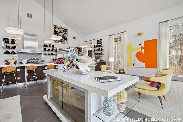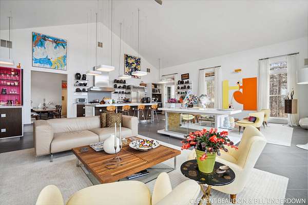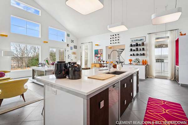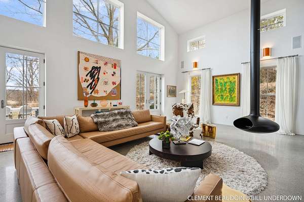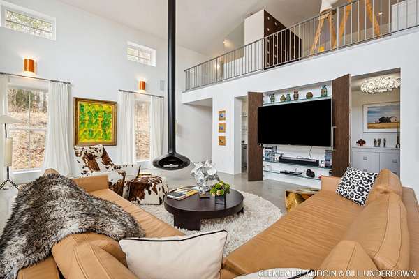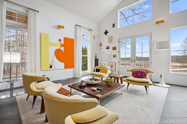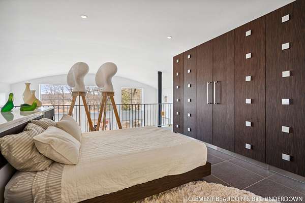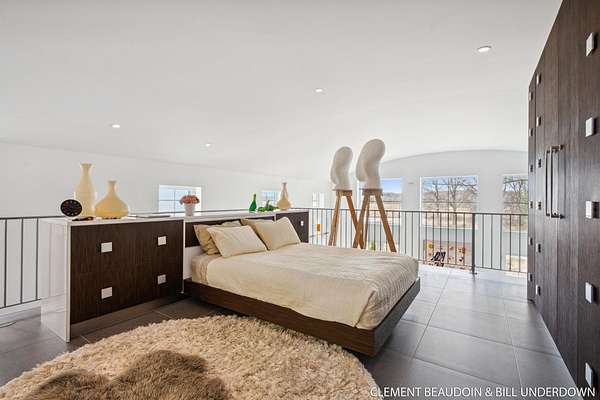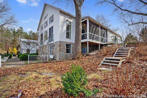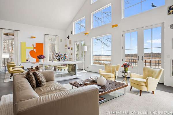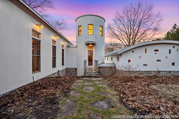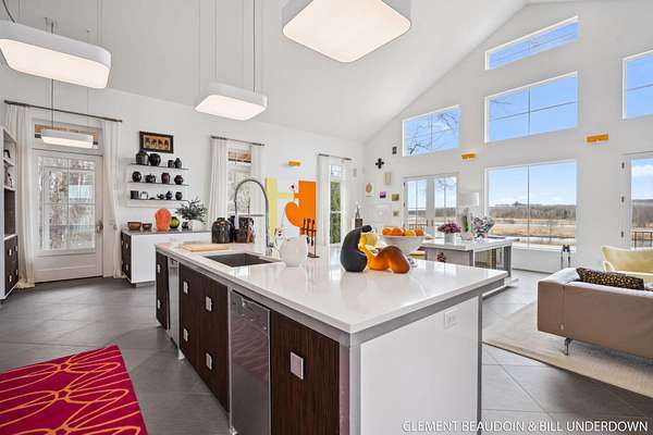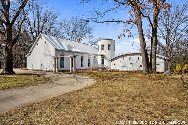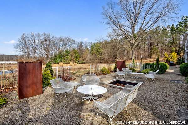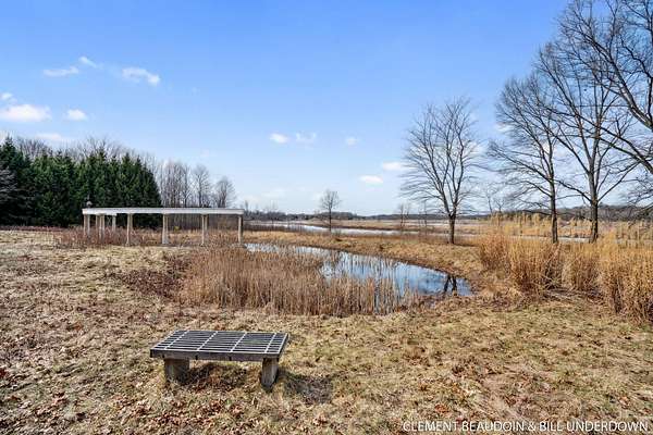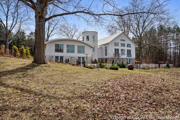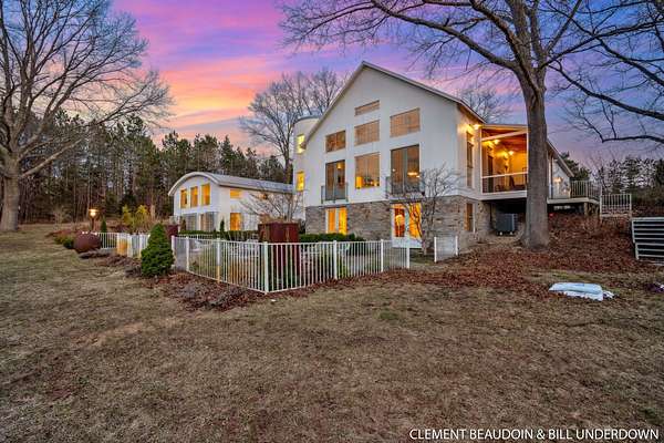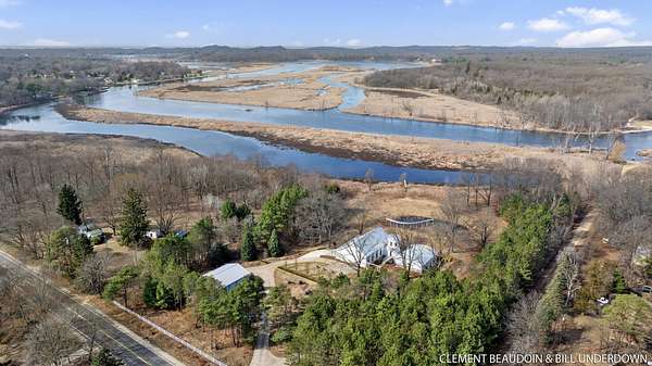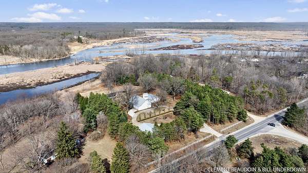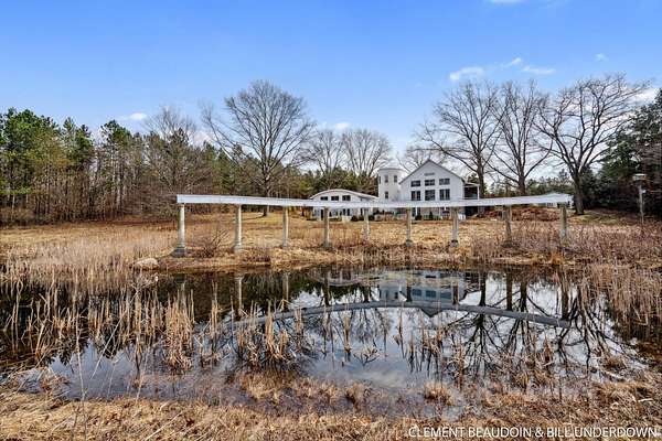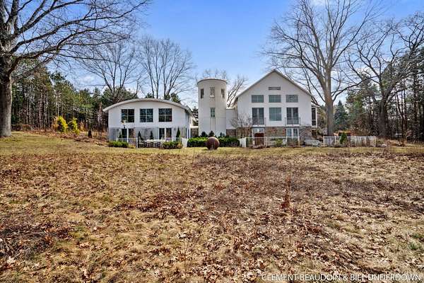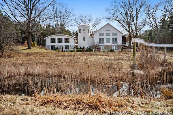 Enjoy spectacular sweeping sunset views over the Kalamazoo River. This NEW FARM takes a modern twist from dramatic exterior design to thoughtful interiors that perfectly frame the waterfront landscapes. On almost 10 acres the NEW FARM showcases the natural setting of tall grasses, wildlife and Saugatuck's Mt. Baldhead in the distance. The circular entry features a stairway that extends from the lower level up to a lookout tower complete with a telescope. The estate offers a total of 5 large bedrooms, 5 full and 2 half baths included are 2 guest suites, each offering a living room, kitchenette, bedroom, bath and patio.. Any chef would enjoy this gourmet kitchen and open entertaining spaces. Outdoor terraces overlook the pond. Please arrange your tour, this is a must-see! Minutes to Dougla