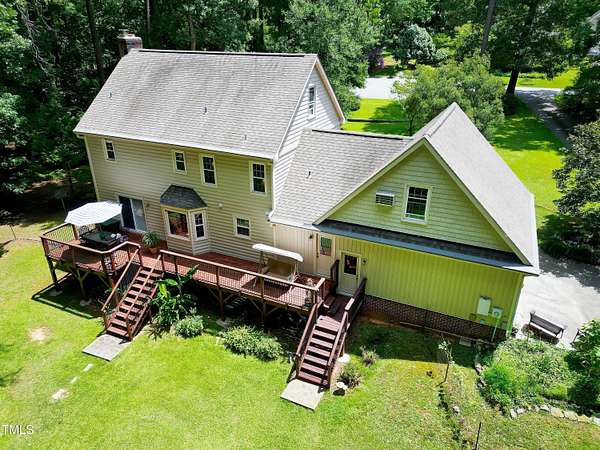 Surrounded by nature on 2.48 acres; you will be AMAZED at how close you are to everything! Nestled on a peaceful cul-de-sac of mature trees just outside city limits. Wake Co taxes only, No HOA!. Aqua NC owns adjacent community well site. Well-maintained 3 bed, 2.5 bath home + 475 sf Rec. rm accessible from the main living area as well as a back staircase. Note: sellers unable to locate permit for this space. Also, there is 540 sf of ready-to-finish Walk-Up Attic!! Many quality updates like engineered bamboo floors downstairs, new carpet upstairs and a renovated Kitchen w/ granite counter tops extending to a tile backsplash and glazed cabinets. Replaced windows & shutters, exterior doors, new doors for the side-load garage, roof, siding, HVAC and renovation (2023) of the large backyard deck retreat for gatherings with family and friends. All this yet you are still just 10 min. to Crossroads restaurants & shopping; 12 min. to Pullen Park-Dorthea Dix Park-NC Farmers Mkt. & 5 min. to Lake Wheeler & Yates Mill Pond. Easy access to 40, 440, US-1, 540, RTP, NCSU or you can literally be in downtown Raleigh, Cary or Apex in less than 20 minutes. Going to NC beaches or mountains? 3-4 hours!! AMAZING!! Beautiful homes & friendly neighbors in the subdivision ...be the first in line for this opportunity!
