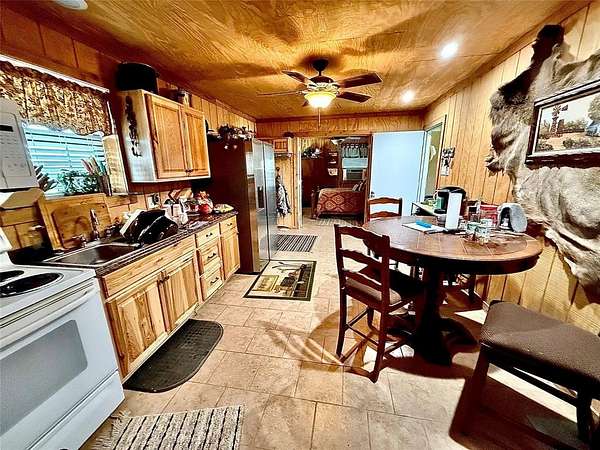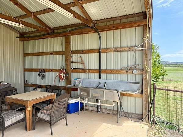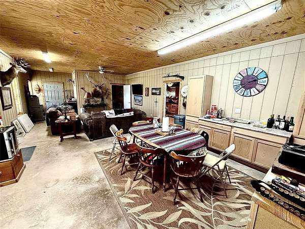 Amazing Grace Ranch. This property is the ultimate retreat. An improved road leads you to a well built barndominium style cabin. There is a porch on the east side of the cabin that is great for watching wildlife in the evenings. There is an additional living space for guests in the open shop located next to the cabin with its own full bathroom. The covered shop area also has a stainless steel sink for cleaning any game that may have been taken. The owner has spared no expense in making this a quality hunting operation. There are 5 blinds strategically placed across the acreage all of which will convey with the sale. Around 90 acres in cultivation that is normally planted in wheat with the remainder in pasture. There are two tanks on the property that both have fish in them. The deeper of the two is 25-30 feet deep. New 5 strand barb wire fences have been put up in the past several years around the whole property. There are two water wells on the property. The house water is supplied by Blair water.