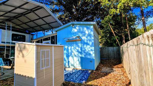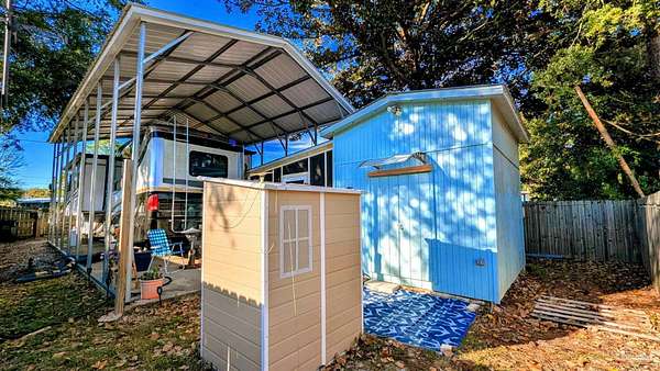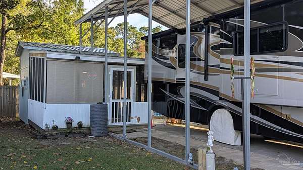 Unlock the Adventure of a Lifetime with Your Dream RV Lot in Spanish Cove! Get ready to dive into the ultimate RV lifestyle with this, fully-equipped RV lot that has everything you need! Imagine pulling into your own private paradise, complete with a spacious RV pad AND port, and all the hookups you'll need to start living your dream vacation spot. The fully fenced lot offers both privacy and peace of mind while the beautifully customized Screened-in Porch is great for morning coffee or evening gatherings!! Need storage? No problem! This gem features a spacious storage shed complete with electricity, vinyl flooring and washer and dryer hook-up. The additional shed gives you even more space for all your storage needs. Nestled amidst vibrant, lush foliage in the highly sought after Spanish Cove community, this neat as a pin RV lot is truly a treasure! But that's just the beginning! If you enjoy community activities, Spanish Cove is the place to be! This lively golf cart-friendly neighborhood boasts an array of fantastic amenities: enjoy 24-hour security, a seasonal outdoor pool with breathtaking views of Perdido Bay, a welcoming clubhouse, direct bay access, a fishing pier, a playground, a sandy beach area, and courts for tennis and pickleball! And let's not forget-this prime location is just minutes from a public boat launch, the stunning Gulf of America beaches, and a diverse selection of shopping, dining, and amusement parks. The Gulf Coast's best offerings are right at your fingertips! Seize this incredible opportunity to own not just a lot, but a vibrant lifestyle in Spanish Cove! This serene sanctuary is calling your name-don't let it slip away! Call TODAY to schedule your private showing and turn your dream into a reality! Spanish Cove isn't just a place to live; it's a lifestyle! Buyer to verify all information during due diligence.