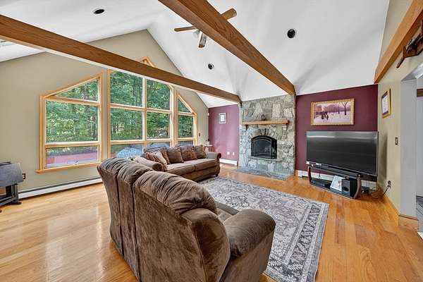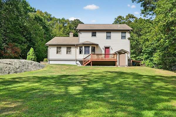 Set nearly 600' off the road, this custom-built Colonial offers unmatched privacy surrounded by mature woods. Nestled on a 2.4-acre lot, the property features a large yard, shed, and horse barn--ideal for hobbyists, animal lovers, or those seeking a peaceful lifestyle. Inside, you'll find 3 spacious bedrooms and 2.5 bathrooms, including a desirable first-floor primary suite with private bath. The heart of the home is the expansive family room, highlighted by cathedral ceilings and abundant natural light. A functional layout and generous living spaces make this home perfect for both entertaining and everyday living. Enjoy the tranquility of country living while still being just minutes to major routes, schools, and local amenities. A rare opportunity to own a private retreat in Dighton!