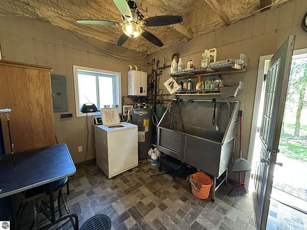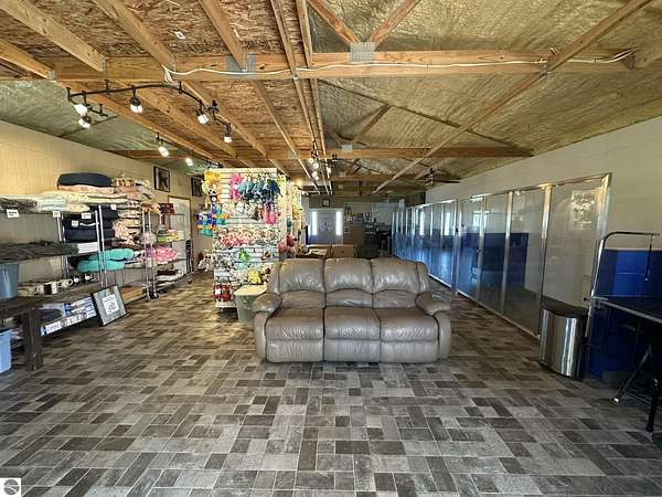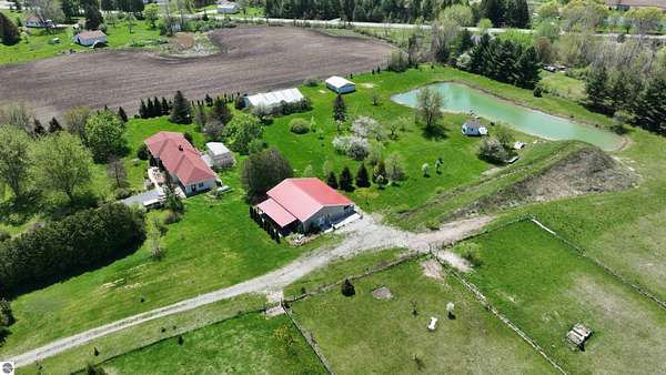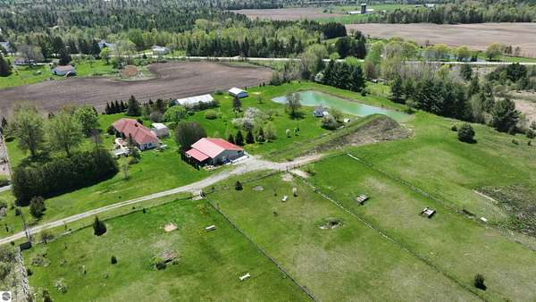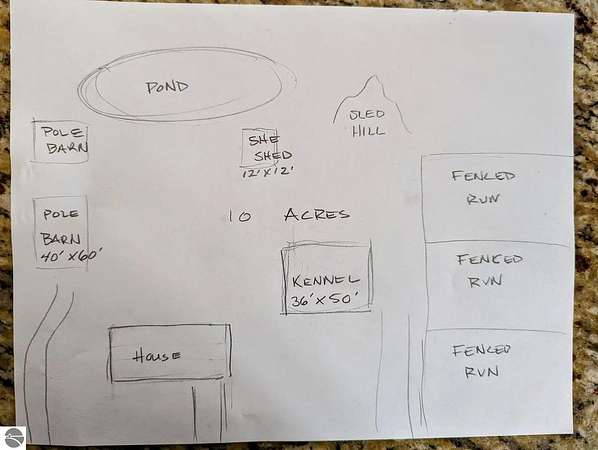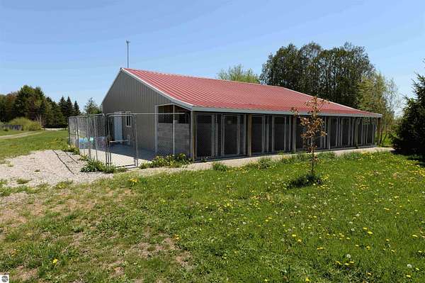 An incredible opportunity to own 10 acres close to Tawas. Set up to breed/groom/board dogs. The 36 x 50 kennel has 10 boarding stalls and four whelping pens, a grooming area and office area. Outside there are three separate fenced runs. The 2850 sq. ft. home has 3 bedrooms, possibly 4 or mother-in-law suite, 3 1/2 baths with solid hickory floors and Andersen windows. The two sided fireplace opens to both the living room and family room. The crawl space was redone by Foundation Systems of Michigan. New septic tank and field in 2019. There is an additional 50x64 pole barn and an additional 24x32 garage. The yard has 16 fruit trees, a sledding hill and a 25' deep pond ready to be stocked with fish. You can relax by the pond on the deck off the shed that has electricity.