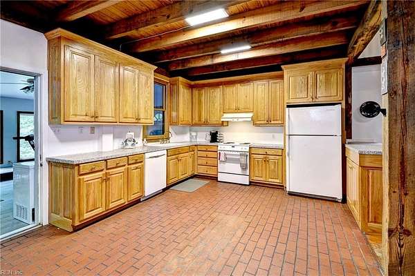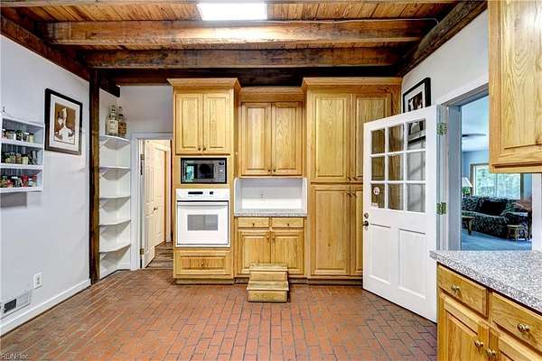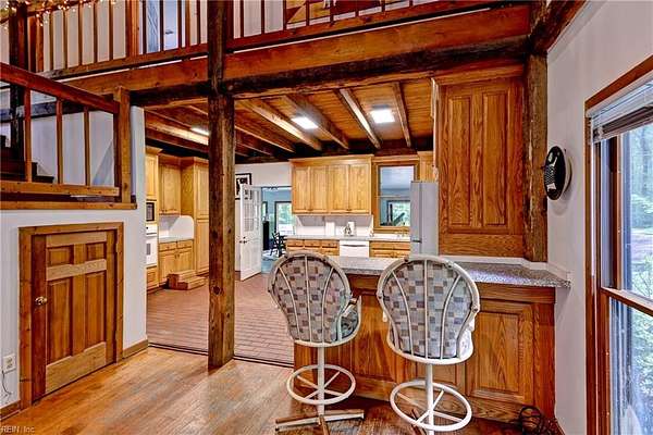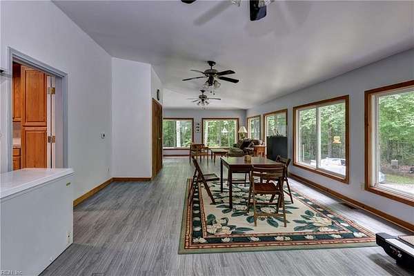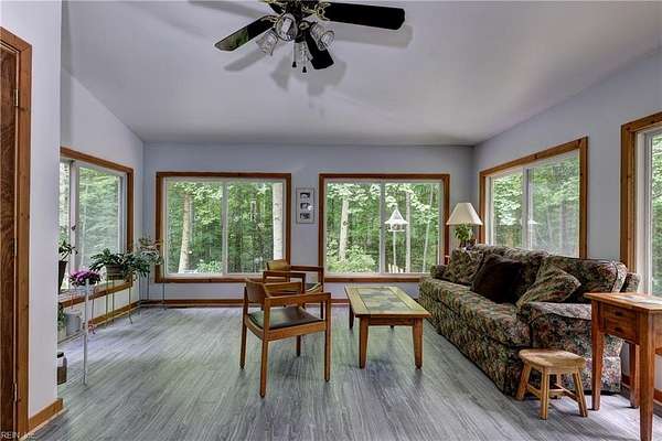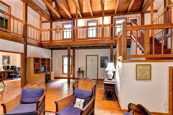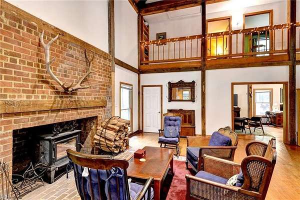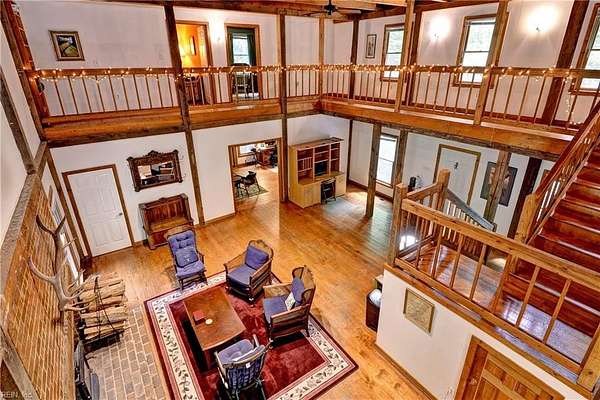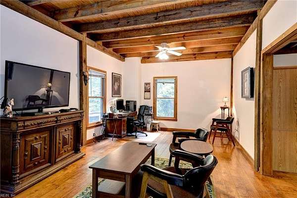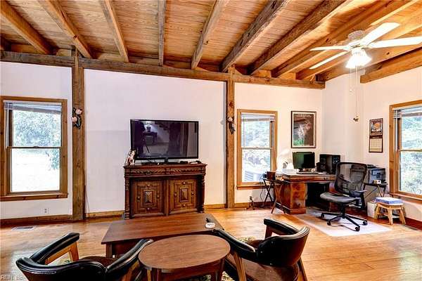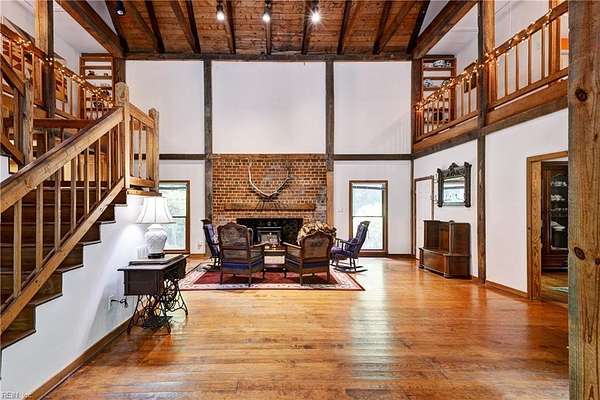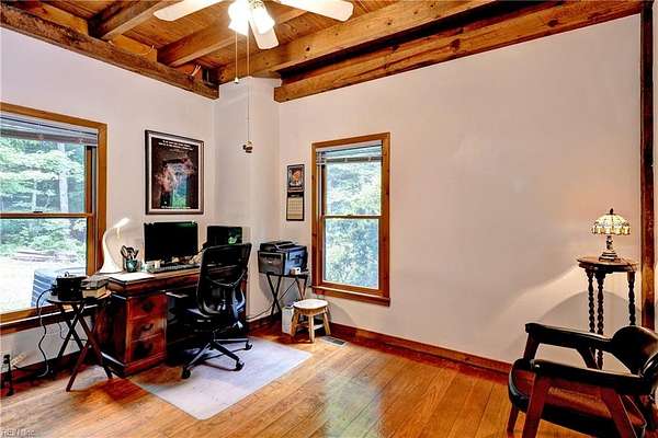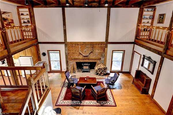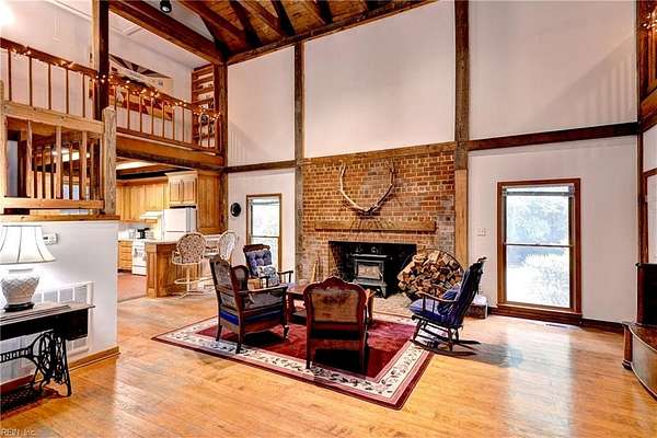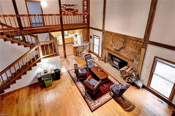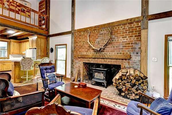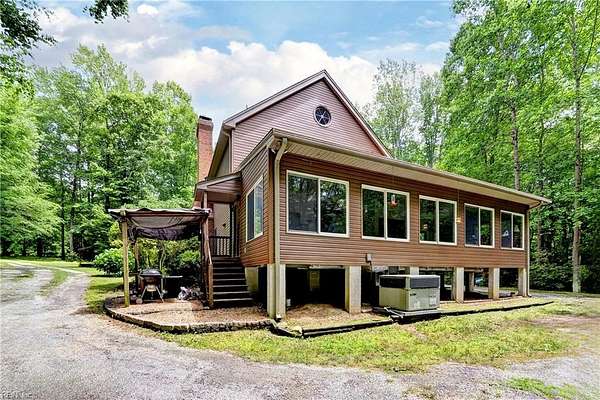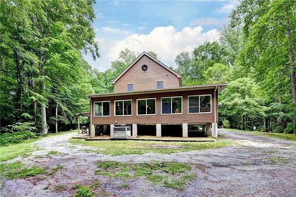 Rare Country Estate! 20 acres and a custom-built, single-owner, hunting lodge style home. This spacious home with an open floor plan sits amidst mixed fields and woodland in historic Surry County! This remarkable property is tucked away from neighbors, but only five minutes from the Williamsburg ferry and 20 minutes from Smithfield. Features include exposed beams, hardwood floors, newly update bathrooms, oversized fireplace with wood burning stove, brick kitchen floor, potential attic living space, and a gracious sun room. Originally built in 1980, the owners have loved and cared for the property, maintaining excellent records of all original plans, renovations, and repairs. This property is exceptionally suited for entertaining, homesteading, and intergenerational living, family subdivision allowable.