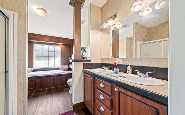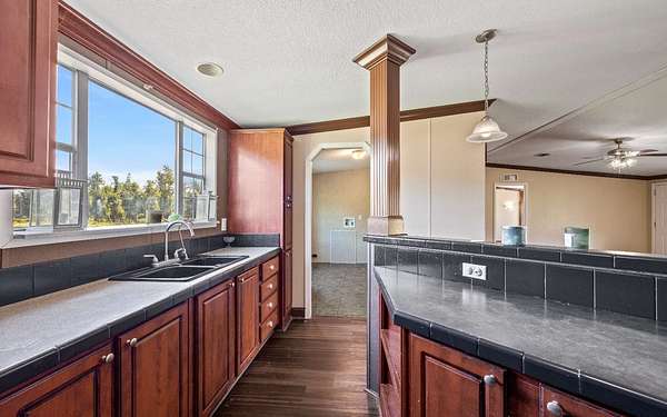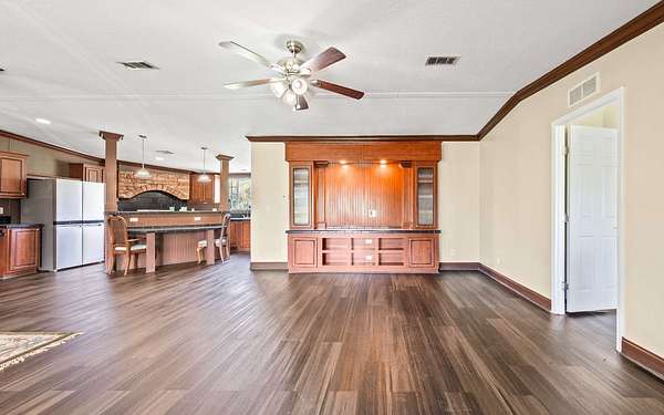 - Ceiling Fans, Draperies, Laminate Counters, Vaulted Ceilings