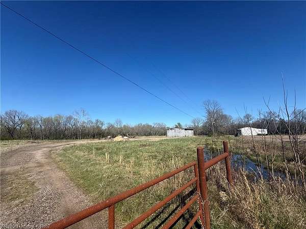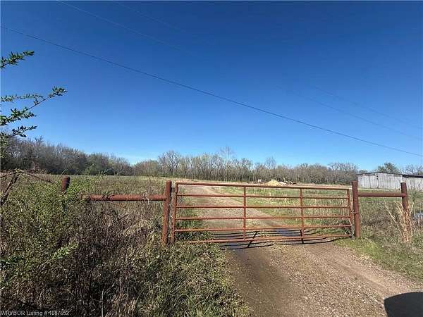From highway 71 in Waldron, turn east onto private road just north of Sweetgum Lane, and South of Alliance Propane. Follow the private road past the first shop. This property is just on the other side of the pipe privacy gate.