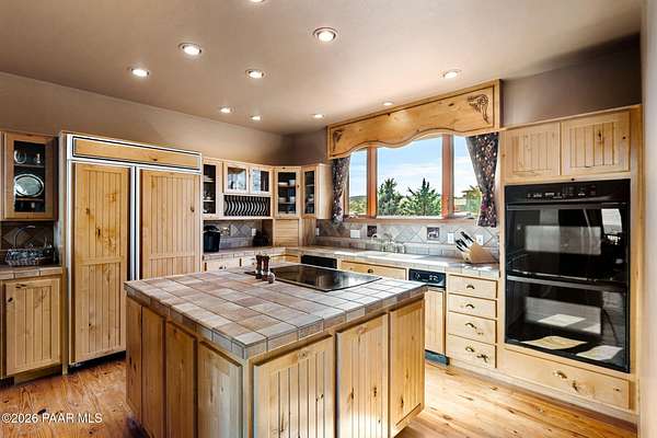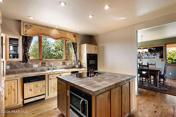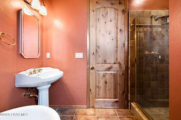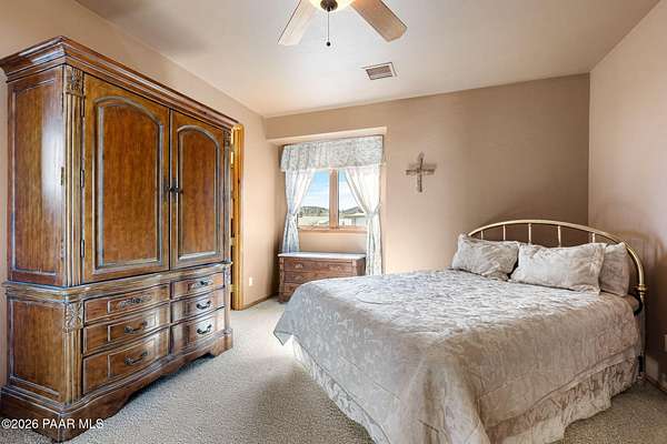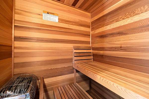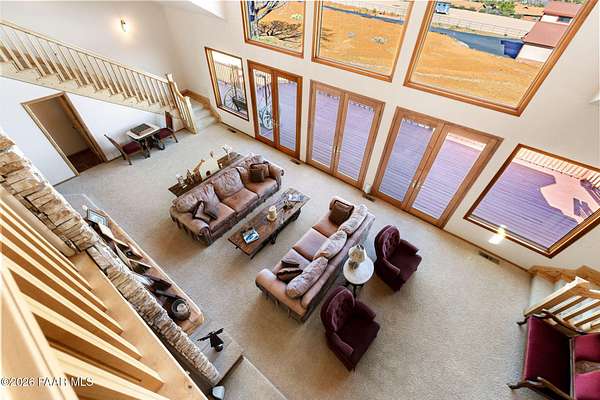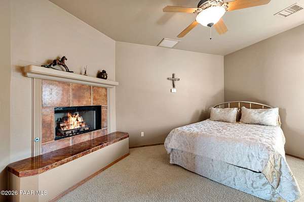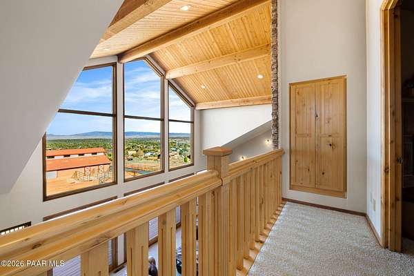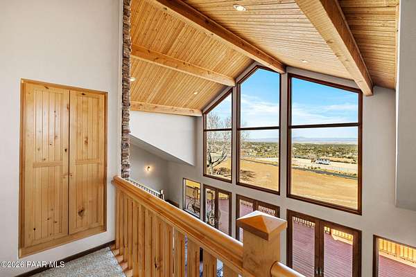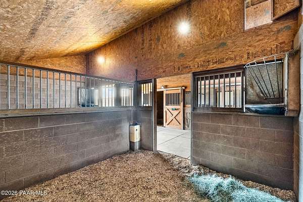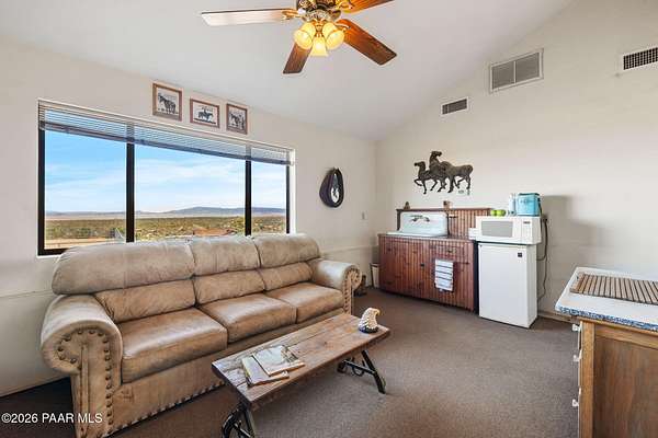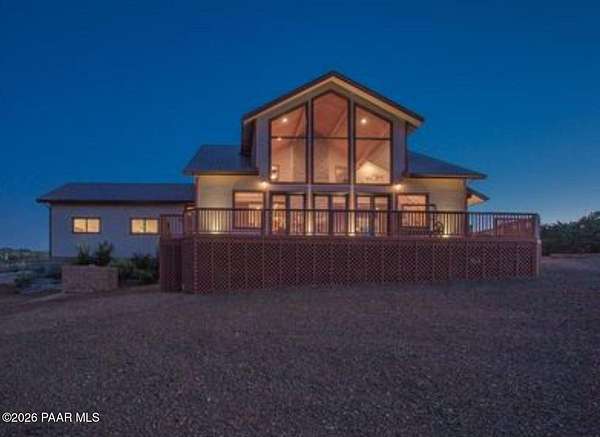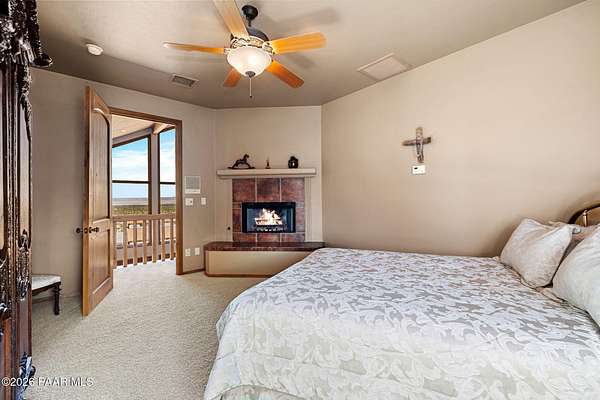 Set on 2.43 acres of pristine equestrian grounds, this stunning custom mini-ranch offers a rare blend of luxury, privacy, and thoughtful design. Created with both comfort and functionality in mind, the property is a dream for horse enthusiasts and entertainers alike. At the heart of the home, an inviting living room showcases a dramatic floor-to-ceiling stacked stone fireplace, flanked by dual staircases that add architectural interest. An expansive wall of dual E-hi solar windows floods the space with natural light while framing breathtaking panoramic views extending to the San Francisco Peaks. The chef's kitchen anchors the home, perfectly suited for both everyday living and hosting. Each private primary suite is its own retreat, featuring a cozy fireplace and a full en-suite bath. Entertaining is effortless with a full wet bar and expansive deck. While a private sauna offers a serene escape after a long day. Equestrian amenities are nothing short of exceptional, including four 12x12 stalls with automatic waterers, each opening to its own 12x24 turnout. The well-appointed barn also features a tack room, hay storage, office, and storage room, along with a charming bunkhouse complete with a spacious bedroom and bathroom. A wash rack with hot and cold water, a 100x200 riding arena, and a hot walker round out this extraordinary property. This refined estate seamlessly blends upscale living with world-class equestrian facilities, all set against a truly breathtaking Northern Arizona backdrop.