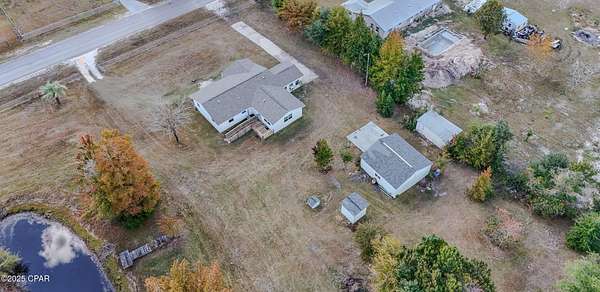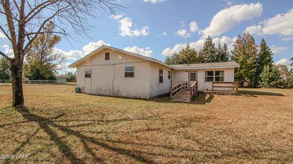 Large Home on a spacious 1.5 Acre Parcel located in Bayou George. The home is very open, with a fenced yard, pond, and oversized garage that can double as a workshop. There are 3 living spaces/family rooms that can be converted for other uses. As you walk in is the first family area, thru to the kitchen and dining space with a side door to a second living area, also from the kitchen is the 3rd living space and hallway for bedrooms. All dedicated bedrooms are on one side of the home with the spare bedrooms sharing a bathroom and the primary having it's own bathroom space. This home could be moved in immediately without any work needing to be done however updates are expected to be desired. New Roof in 2019 and AC in 2020. Large oversized garage also has been used as a workshop. Manicured pond to enjoy. Seller states there is a second septic tank on back of property that was put in years ago but never used. On septic and deep well. There is a water softer purifying system that is rented from Culligan used. Located in the county, no city taxes at this location. Many updates have been made over time. Appliances have been replaced in past years. Located with a mile of Jaycee ballpark, 2 miles to the Cherokee (David W Hutchison) Boat Ramp, 40 minutes to Panama City Beach.