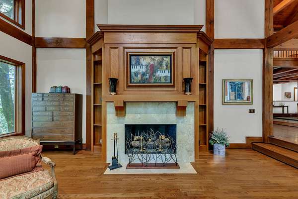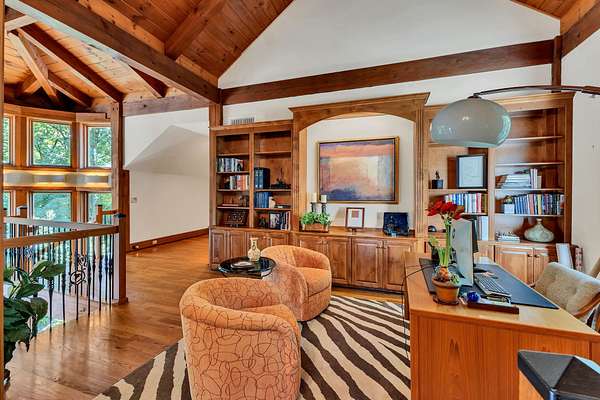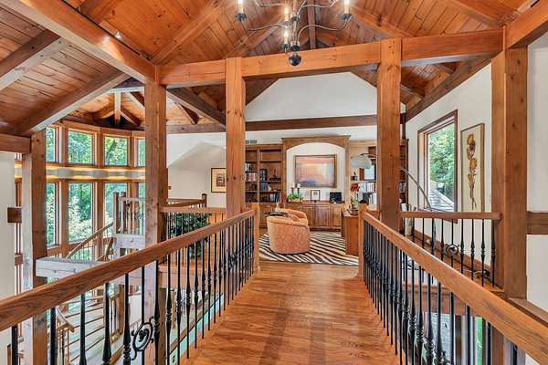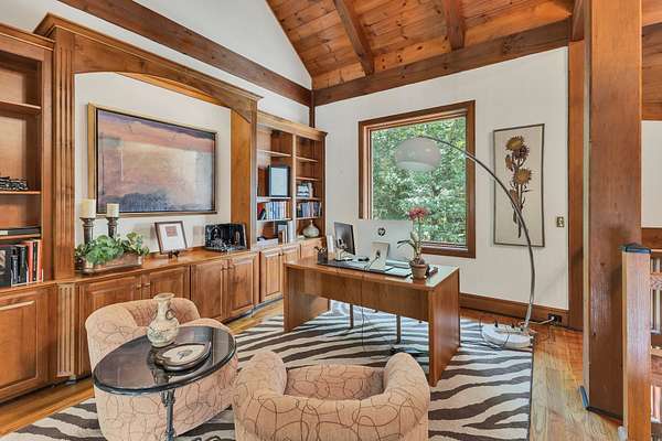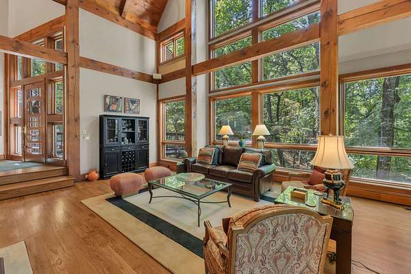 Est $15,028/moA striking blend of chalet warmth and Frank Lloyd Wright-inspired design, this home combines dramatic lines, abundant windows, and a seamless connection to its natural surroundings. Sitting on 11 wooded acres in a gated section at the back of Wildwood Subdivision, it features expansive windows, warm wood finishes & open living spaces. In the heart of Brentwood & only a 12-minute drive to Green Hills. Three screened-in porches. Elevator access to all three floors. 3 car garage w/additional workshop. Media room would also make a great recording studio.