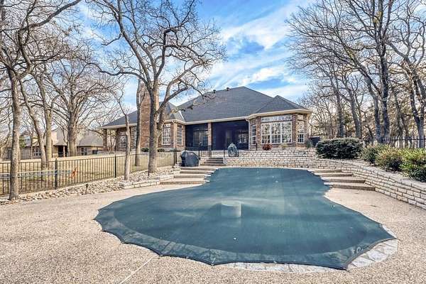 Gorgeous 4-bedroom, 3-bathroom home totaling 3,373 square feet of living space on 2 serene acres, perfectly positioned with the backyard backing up to the Brazos River. Located in a prestigious Pecan Plantation community, this turnkey, move-in-ready residence underwent a comprehensive remodel in 2021, featuring a brand-new kitchen with a modern kitchen hood over an induction stove, upgraded appliances, and high-end finishes. This beautiful transitional home also includes new countertops, new flooring throughout, with updated electrical and LED lighting; along with crown molding, and high ceilings that create an expansive, refined feel in every room. Modern comforts include newly remodeled bathrooms, with custom finishings and fixtures that exude quality. Natural light fills the interior, highlighting an open, airy layout; a fully retractable patio enclosure extends living space outdoors, while the open backyard provides frequent deer sightings and direct access to the Brazos River. The curved driveway enhances curb appeal and privacy with scenic views from multiple vantage points. The 12 x 18 outbuilding with electricity offers flexibility as a workshop, hobby space, or man cave, and the sprinkler system supports easy maintenance of the expansive grounds. Pecan Plantation is a unique gated community spanning 3,000 acres along the Brazos River just below the Lake Granbury dam, offering secure access, abundant wildlife, and an enviable blend of luxury, privacy, and accessibility. This property sits just 35 miles from Fort Worth, placing you within easy reach of the Metroplex while enjoying a historic, small-town ambiance and abundant pecan orchards. Wildlife galore abounds within our borders, with deer commonly seen daily. This residence represents a rare opportunity to own a meticulously updated, riverfront home in a premier gated community, truly turnkey and move-in ready for its new owners.