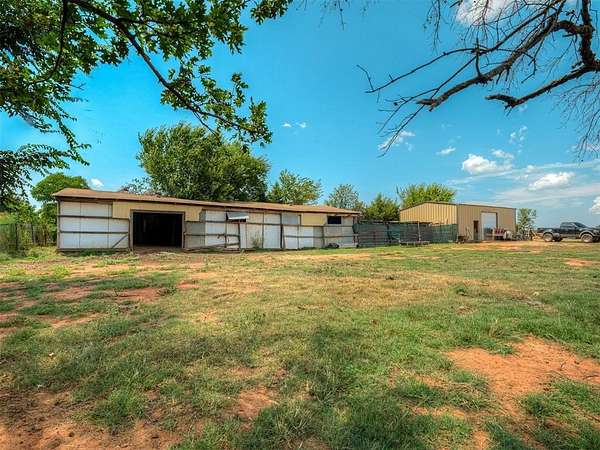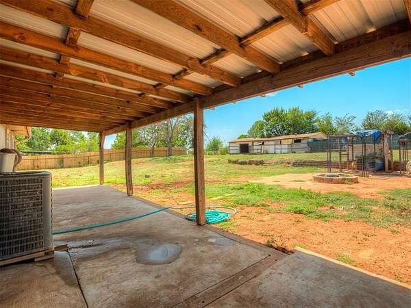 Welcome to your own slice of Oklahoma country living! Situated on two lots totaling 2 acres, this charming property offers space, privacy, and functionality while remaining conveniently located near the new turnpike for an easy commute to nearby cities. One of the standout features is the 24x36 insulated shop complete with electricity, heat, and water access-ideal for hobbyists, small business owners, mechanics, or anyone needing extra workspace or storage. Inside the home, you'll find a bright open kitchen and dining area featuring granite countertops and a functional layout perfect for everyday living and entertaining. Just off the kitchen is a convenient laundry room for added practicality. The cozy living room with fireplace creates the perfect atmosphere for relaxing on cool Oklahoma evenings. Step outside and enjoy the spacious 36' x 12' covered patio with firepit, an ideal setting for outdoor entertaining, summer evenings, and peaceful country sunsets. If you're searching for a property with land, workshop space, and country charm near the city, this home checks all the boxes. Schedule your private showing today!