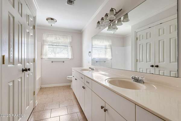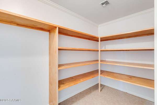 - Attic Access, Crown Molding, Double Vanity, Dual Closets, Electric Stove Con, Primary Bath, Walk-In Closet(s), Walk-In Pantry