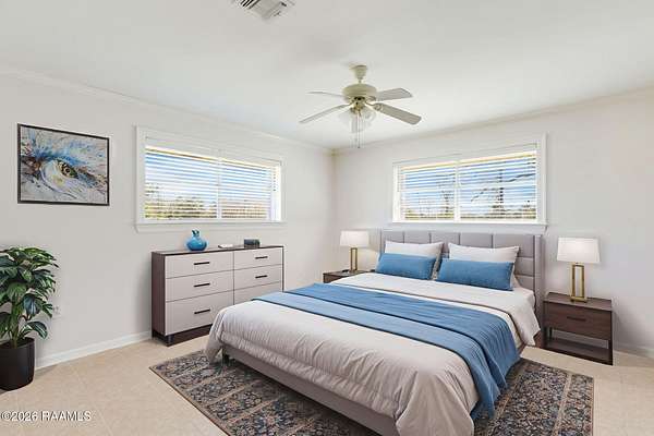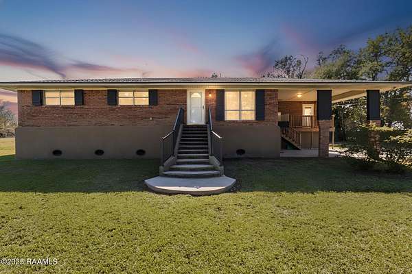 Welcome to this beautiful well-maintained home situated on a lush 4.76 acre property in South Louisiana. Surrounded by Pecan trees, majestic Live Oaks, and a blooming Magnolia, it's a true countryside retreat. Inside, you'll find an open-concept living room and kitchen that creates the ideal space for a family gathering. The kitchen also features a generously sized walk-in pantry area with enough room for a second fridge/deep freezer, perfect for extra storage. Step out onto the recently rebuilt rear deck, great for relaxing in the afternoon while taking in views of the spacious backyard. Thoughtfully designed for both durability and peace of mind, this elevated home was built to stay high and dry. It features metal storm shutters on all windows as well as a 5 year old hip roof, a wind-resistant design. HVAC is approximately 5 years old as well. As a nice bonus, there's an elevator to help bring in groceries or heavy items. The property can be sold as a package with all 4.76 acres, as well as subdivided to include the home on a comfy 1.5 acres. Up to $2000 in closing credit with the use of preferred lender.** Text or call for your private tour today!