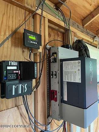 E-panel connects electric to generator, shed, outhouse, and cabin.