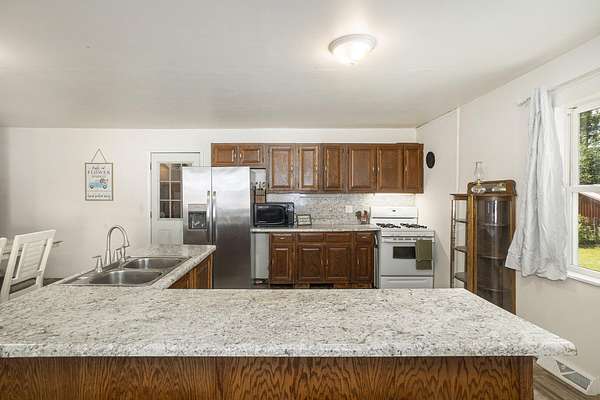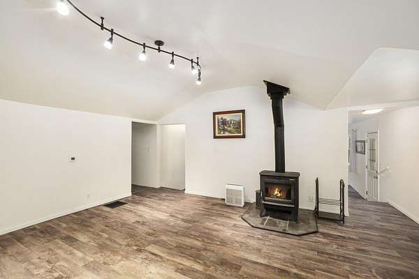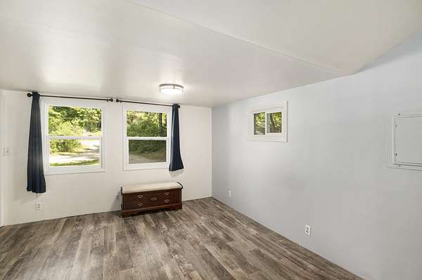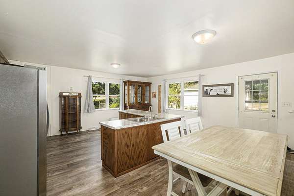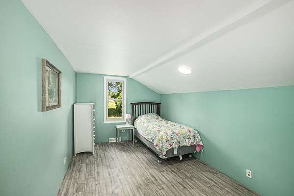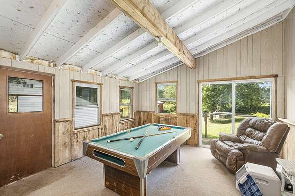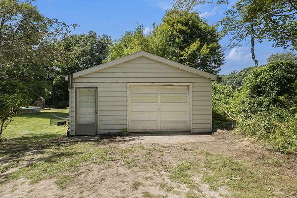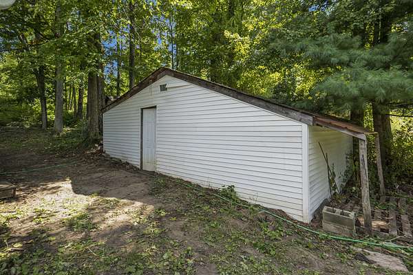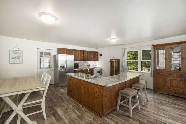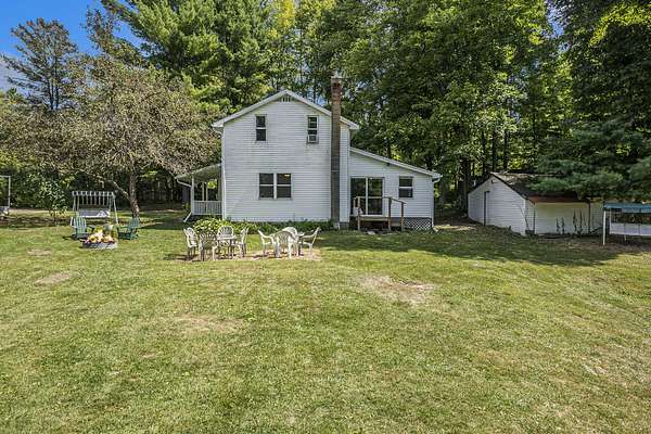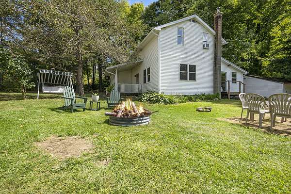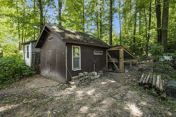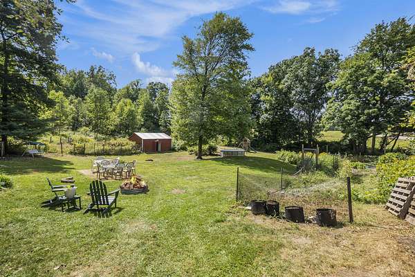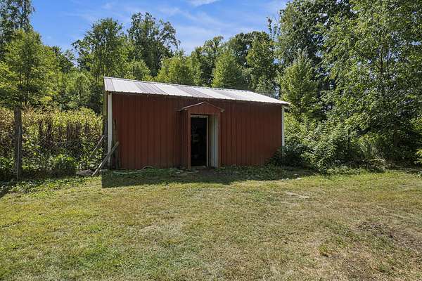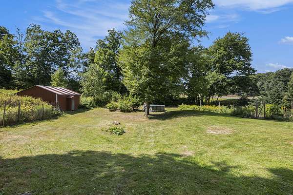 NEW REDUCED PRICE! Nestled on 8 wooded acres, this charming 3-bed, 1-bath home offers peaceful seclusion and modern comfort. Enjoy private trails, abundant wildlife, and maple, pear, apple, and peach trees for seasonal harvests. Inside, the bright kitchen with island is perfect for entertaining, along with main floor laundry, spacious closets, and a cozy 3-season room. Updates include a new roof, plumbing, flooring, woodstove, water heater, appliances, and more-making it move-in ready. Outside, find a small barn, fenced pasture for livestock, chicken coop with run, storage shed, an attached 1-stall garage, and a detached single-stall garage. Gardeners will love the 2,548 sq. ft. garden with a new (2024) drip irrigation system, ensuring efficient, low-maintenance watering. Whether you dream of homesteading, outdoor adventure, or simply relaxing in nature, this property has it all.
