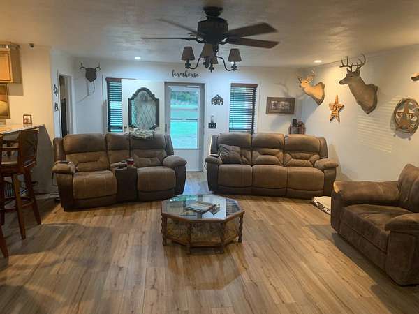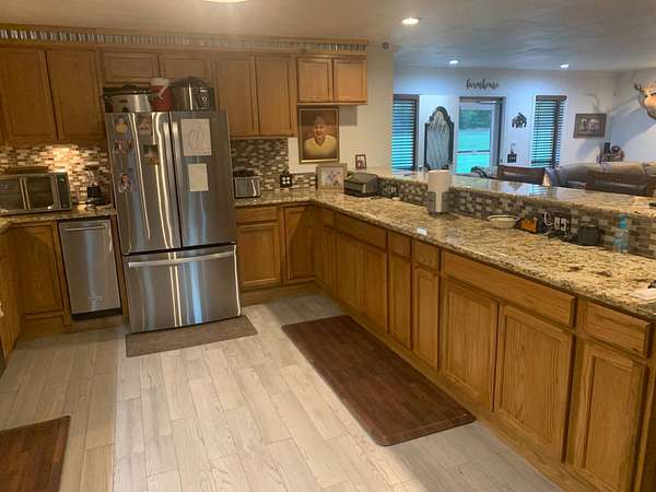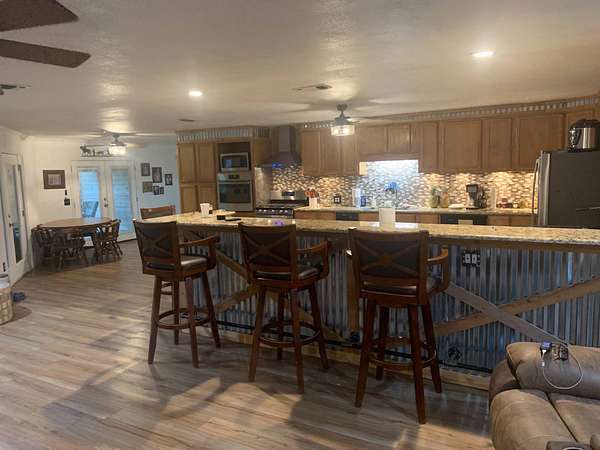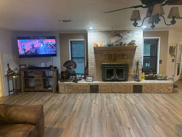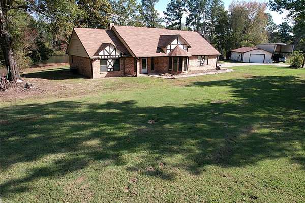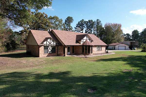 Discover a lifestyle of comfort and tranquility in this exquisite 3000 sq. ft. ranch home in one of the most gorgeous areas in Red River County. This three bedroom, three bath lends itself to country living at its best. This custom home boasts a spacious open floor plan where every room has a paralyzing view. No such thing as too many cooks in the kitchen this enormous kitchen is equipped with double ovens, a trash compactor, an ice machine, and a large French door refrigerator. Custom cabinets, countertops and a giant bar will host countless family gathering and memories. The large living room is accented with a traditional fireplace, hearth and mantel. The fireplace is equipped with a blower system and that is also ducted into the HVAC duct work to warm the entire home. Present now is an insert for more efficient heating and the ability to still have the ambiance of an open flame fire. The master bedroom is very spacious and has an amazing view accompanied by a newly remodeled bathroom featuring a king size shower. Back porch comes with peace of mind built right in. A tremendous space for your family to grill out and watch everyone enjoy all the secluded outdoor area or savor your quiet time with your morning coffee, watching the wildlife and nature wake up and get the day started. Its a must to fish at the beautiful pond that is absolutely in the back yard of the home. Stocked with hybrid Florida bass, Red Eared perch, and Channel catfish, you are guaranteed to be a successful angler. Immerse yourself in the heavily wooded acreage with strolls through the property through the majestic hard woods and pines. The home also features a two-car garage. Just outside is a very spacious 25 x 50 shop or storage building. Large enough for most any project or big enough for plenty of treasures. There is also a large permanent metal camper cover. You absolutely must come visit this property to understand the warmth and comfort that it radiates. Not a neighbor in sight and no HOAs. This is living country!