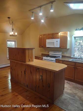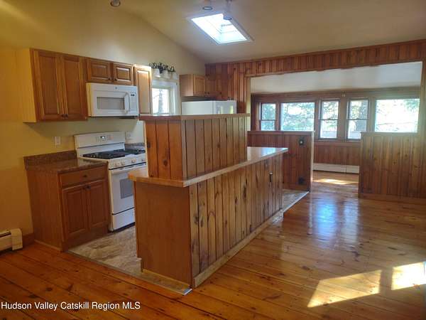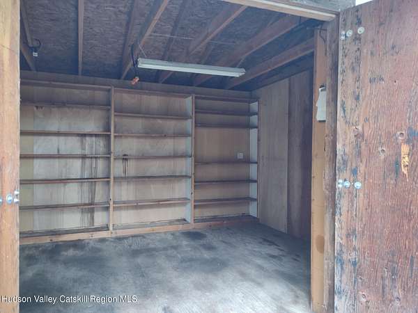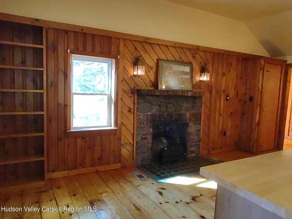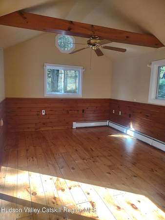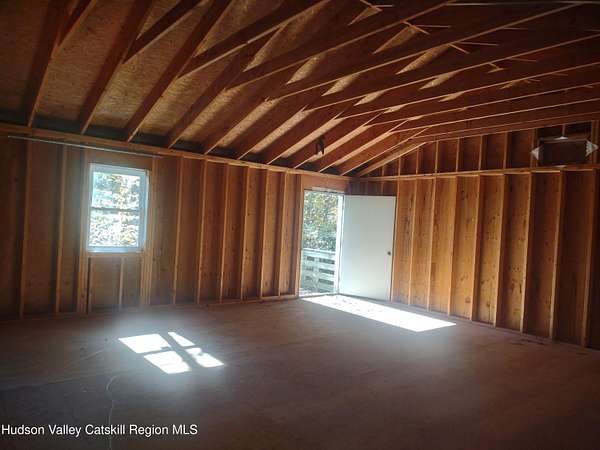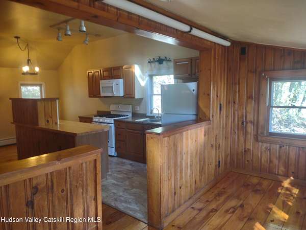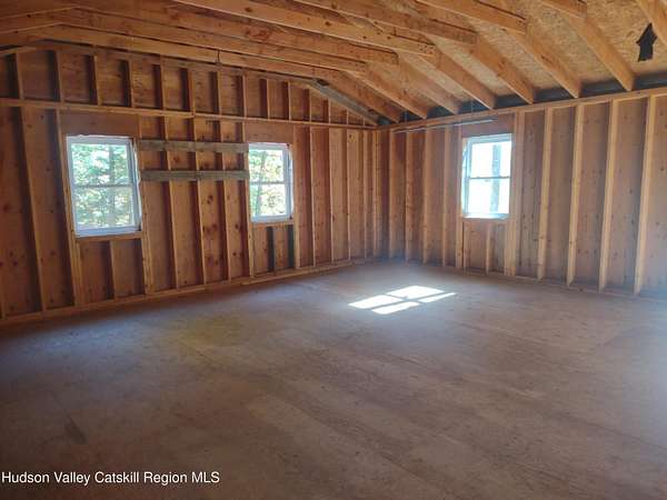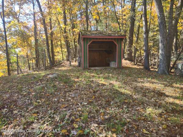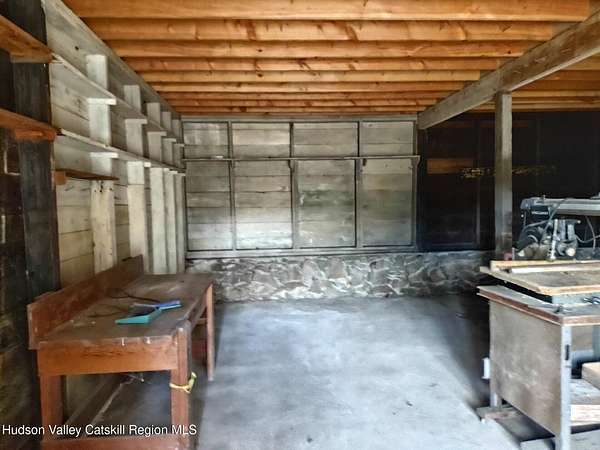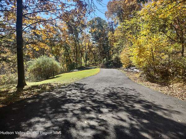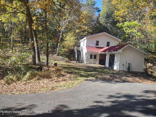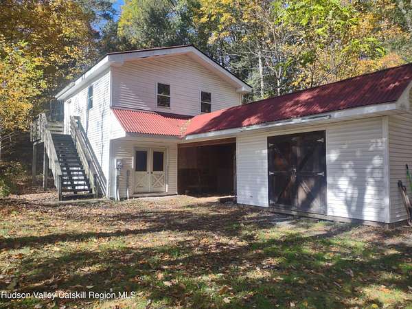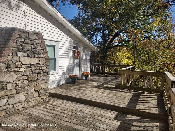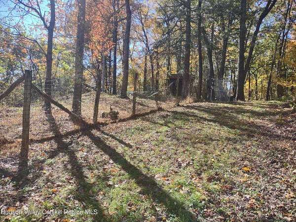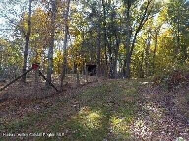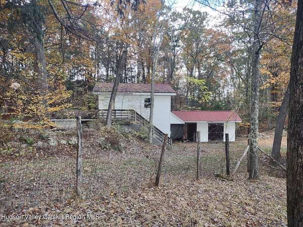 Private Hilltop property with vacation or full-time cottage. Very large newer barn with loft second story that could be artist studio, apartment or guest quarters. Separate electric system for barn. Fenced in area with turn out shed for animals. Cottage has large bedroom and sleeping loft, Great room with Living, dining and kitchen area. Great room can be enlarged into sunroom area. Large wrap-around deck. Great starter home with possibility if enlargement Close to Historic Rondout area and boating.