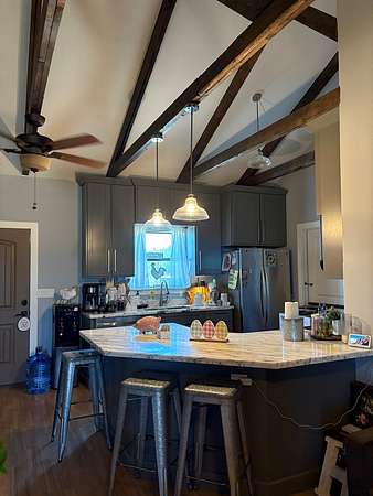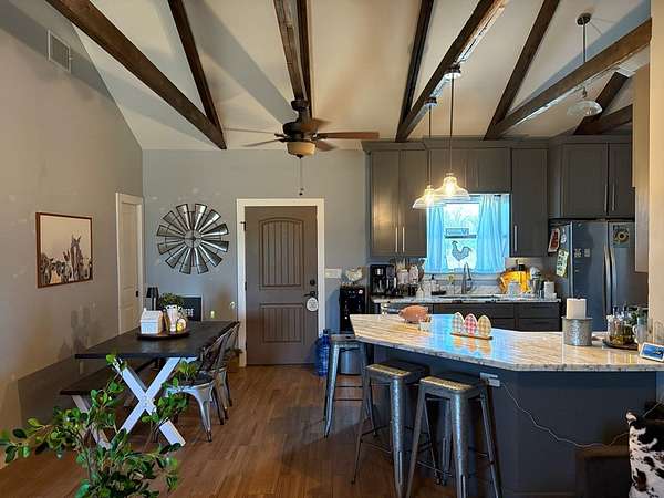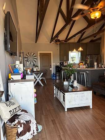 Est $1,838/moWelcome to this country charmer in the city of Quemado. Experience country living at its finest! Country home offers 3 bedroom and 2 bath. Open concept layout with beautiful wooden beams on high ceilings. The kitchen offers marble countertops with custom cabinets which supply ample storage and a great breakfast bar for entertaining. Enjoy the fully fenced 5 acres for outdoor recreation, perfect for raising your livestock. The property offers 50+ mature-producing pecan trees.