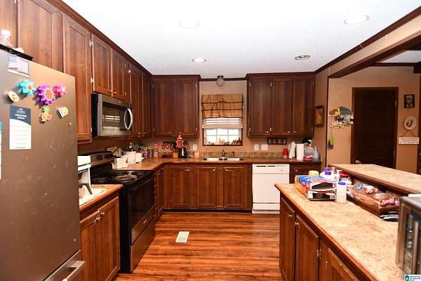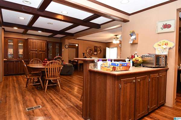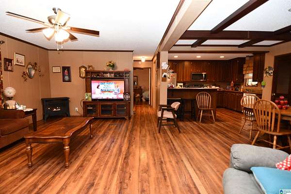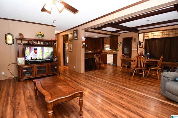 True country living at its finest. Tucked well back from the road on approximately 2 acres, this beautifully maintained home offers privacy, space, & convenience just minutes from JSU. Built in 2012, the home features a desirable open-concept floor plan with a large living room, dining area, and kitchen--perfect for everyday living & entertaining. Hardwood floors, abundant built-ins, a dedicated laundry room, and a bright sunroom enhance both comfort & functionality. The home offers two spacious bedrooms & two full baths. The primary suite includes a large walk-in closet & a well-appointed master bath with jacuzzi tub, double vanities, & separate shower. Additional features include a storm shelter and excellent outdoor amenities: a 32x16 barn with electricity, an attached 31x10 storage area, plus an additional 13x10 covered shelter ideal for lawn equipment. The acreage is completely fenced and includes a 24x22 carport and dog pen. A great opportunity for move-in country charm!