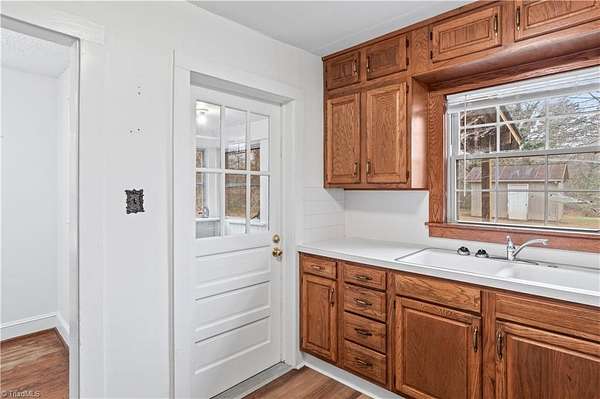 Step into this inviting bungalow nestled on 1.51 acres in rural Tobaccoville. Filled with natural light, this home offers warm hardwood floors, comfortable living spaces, and a charming covered front porch--perfect for morning coffee or winding down at the end of the day. The kitchen provides classic cabinetry and a functional layout for everyday living. Two cozy bedrooms are located on the main level, while two additional upstairs rooms (not heated, approx. 330sf) offer flexible space for an office, creative studio, or storage. With a spacious yard and convenient access from a main road, this property offers room to grow, relax, and make it your own. Home is being sold as is.