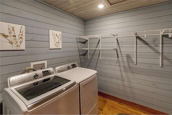 The home features a thoughtful layout with beautiful hardwood floors and a lakeside primary bedroom with breathtaking lake views. Finished walkout basement and attached garage.