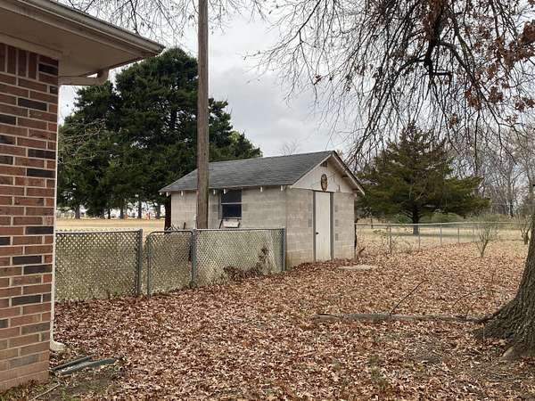 Nestled among rows of old growth pines, you will find this secluded, all brick, one level home and shop on 4 acres! Home boasts a welcoming foyer, open living room with brick wood burning fireplace, dining area and large kitchen with all appliances & lots of cabinets. 2 car attached garage, safe room, 3 bedrooms, 2 baths, lots of closets and big windows. Outdoors there is a covered deck, outbuildings, old growth trees, kennel, fenced yard, and a 40x30 insulated shop with full bath and finshed flex room/ bedroom. Located just outside of Grove City limits, this property has no HOA or restrictions but is 2 minutes to school, dining, hospital, shops & more. Perfect for a business, subdividing or enjoying the country fresh air. Newer roof, HVAC, flooring and paint. Easy to show!